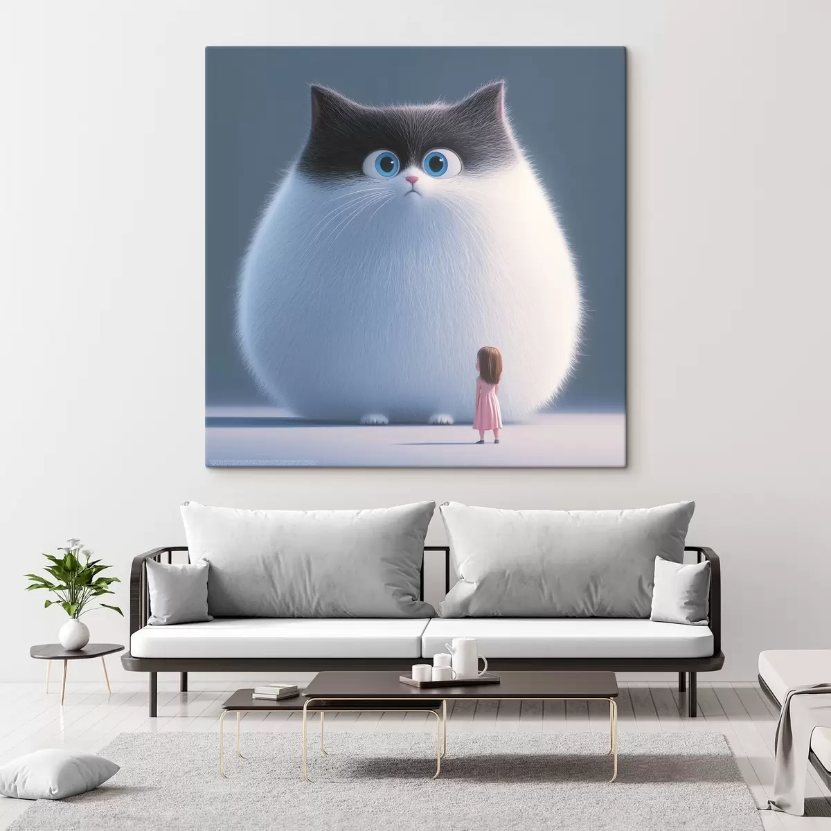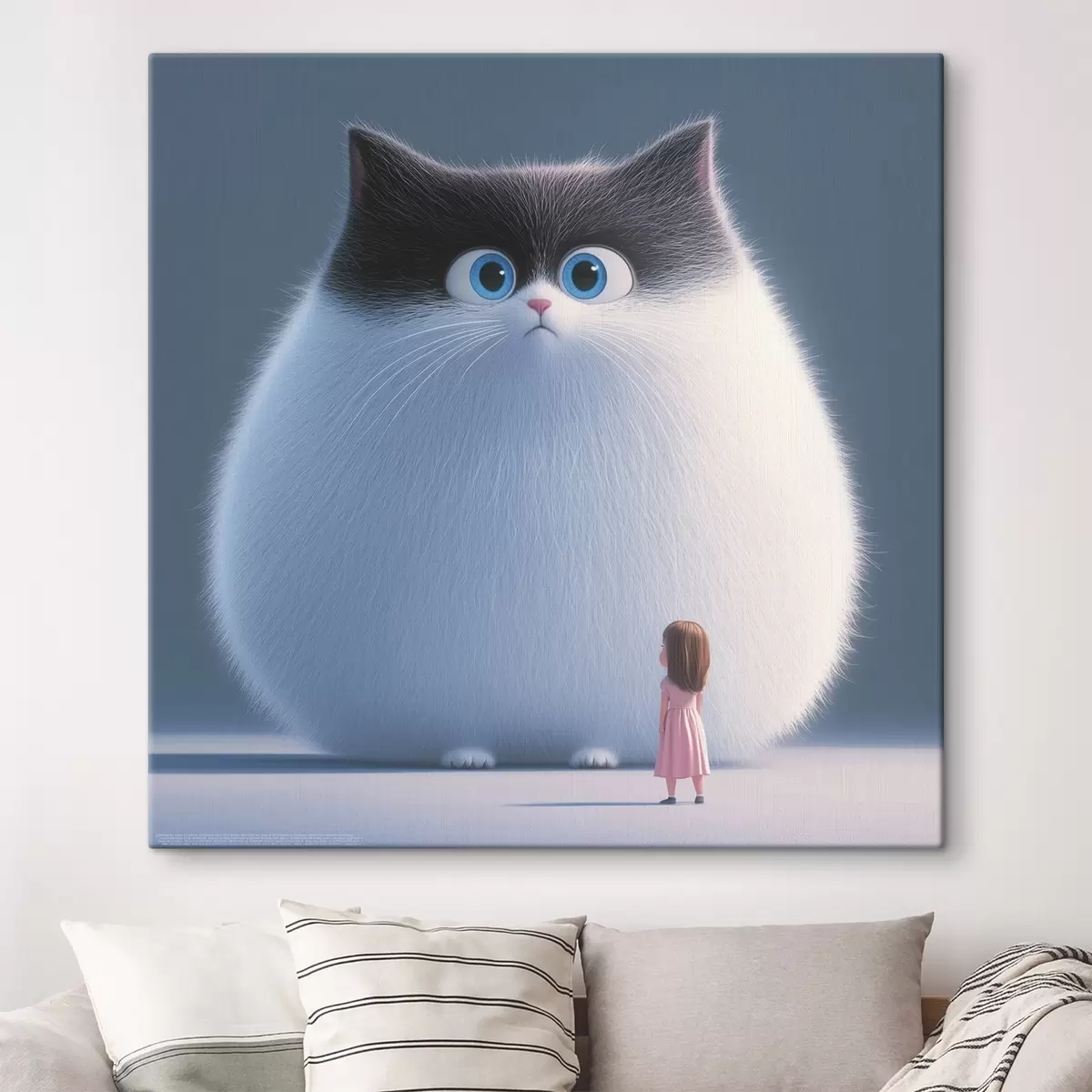murales Un gato esponjoso sorprendido con una niña en estilo ilustración s41974