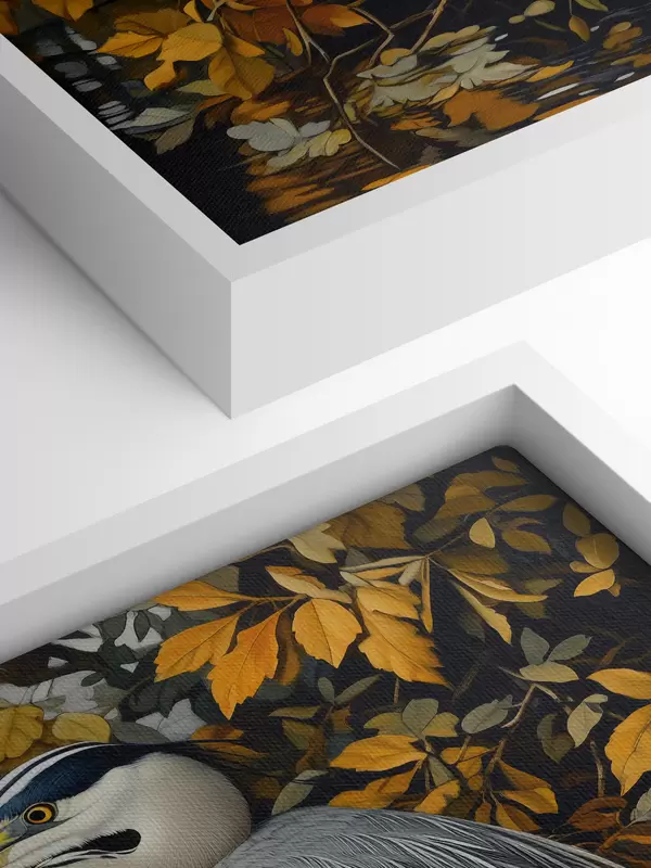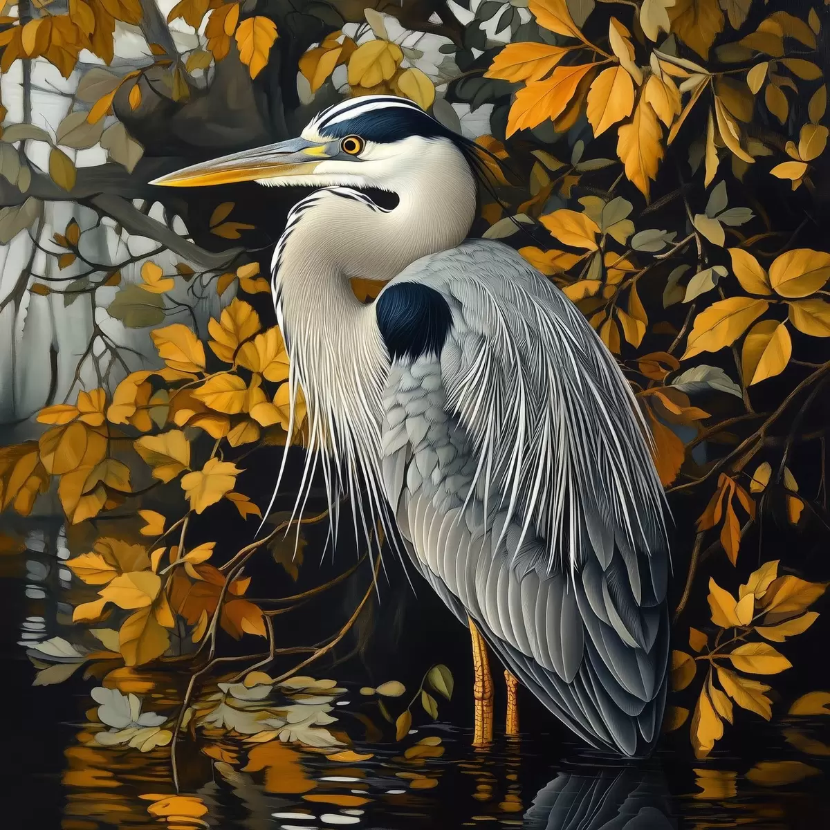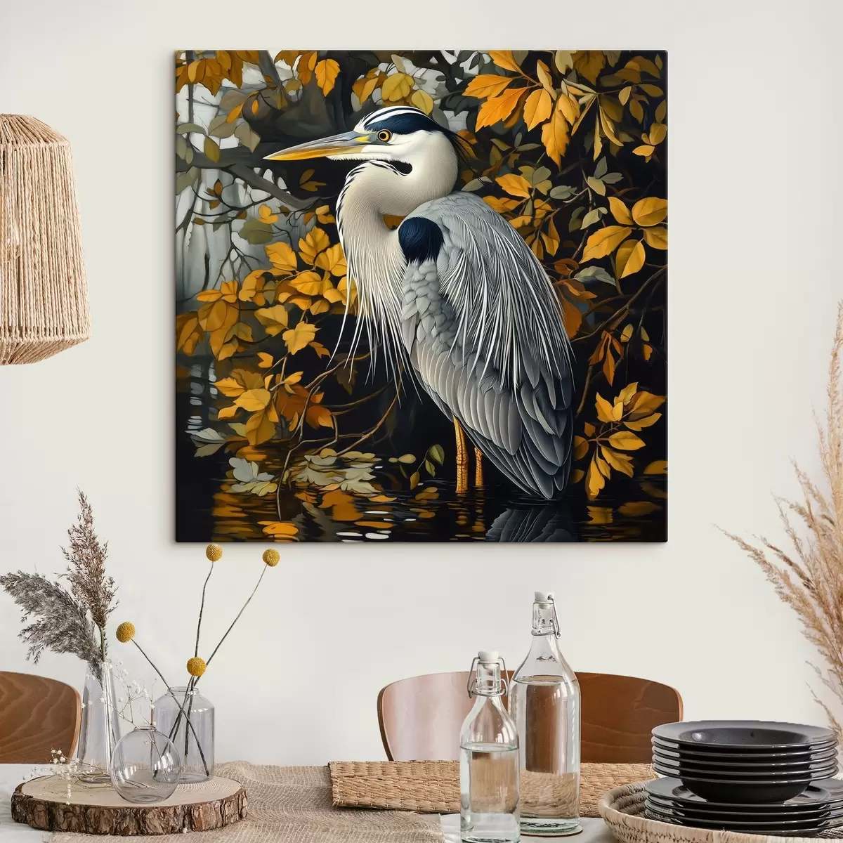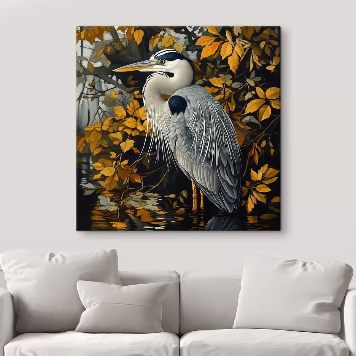 murales Una garza en el agua sobre un fondo de hojas otoñales s42041