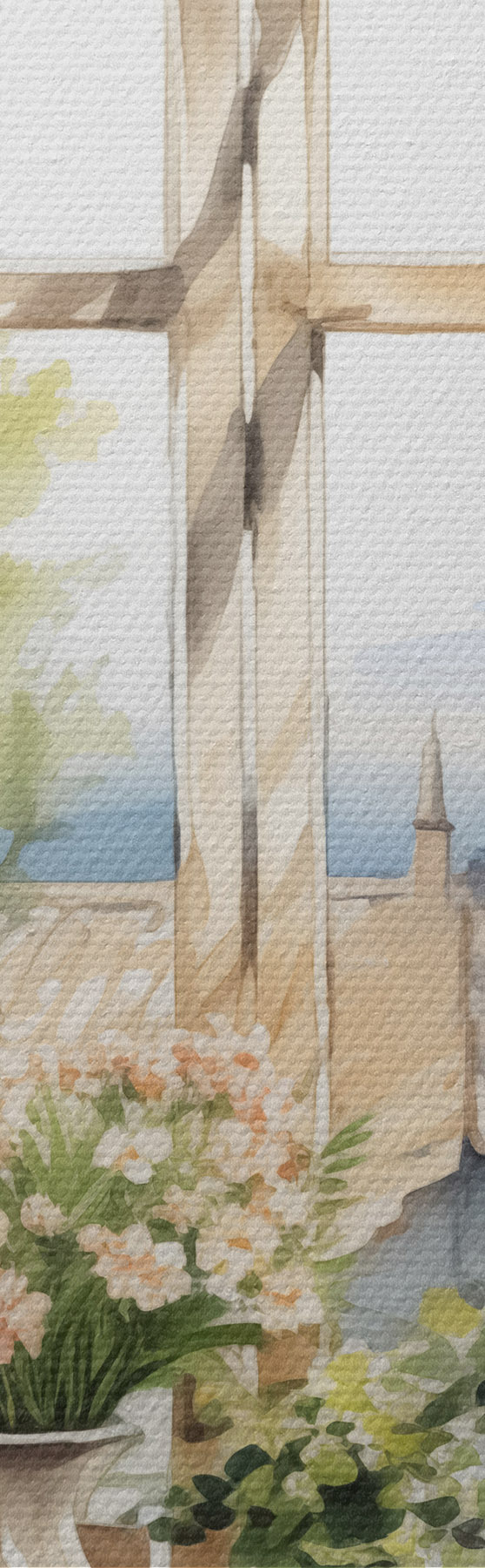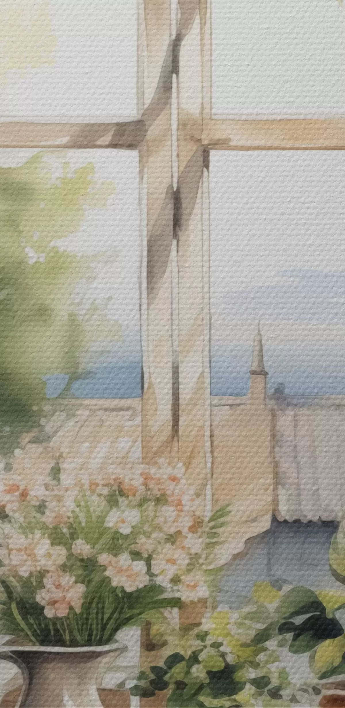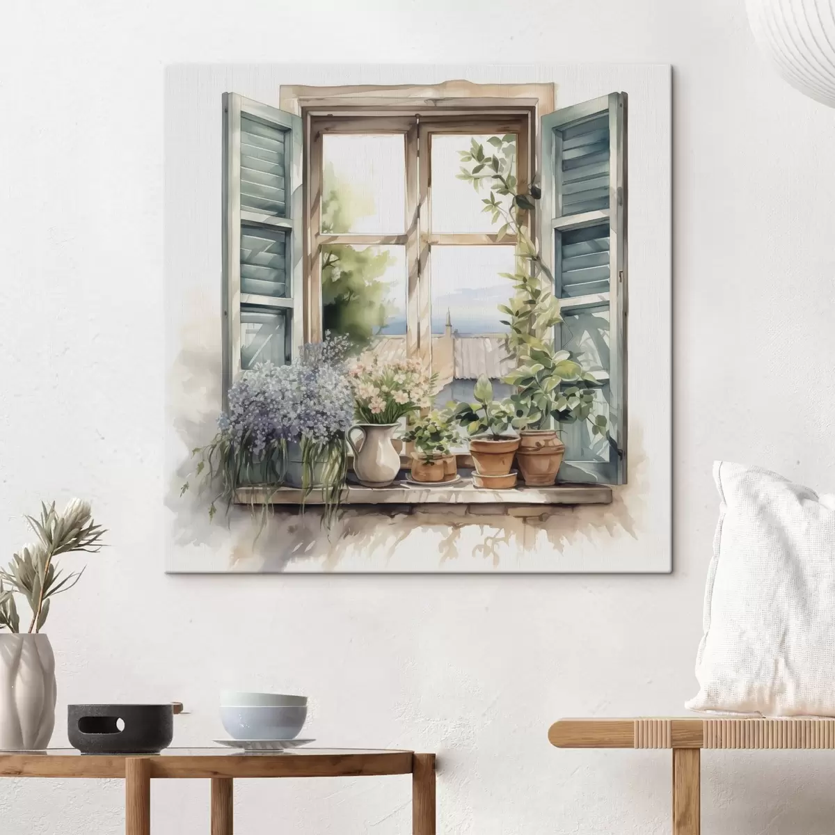 murales Vegetación en el alféizar de la ventana imitación de acuarela s42144