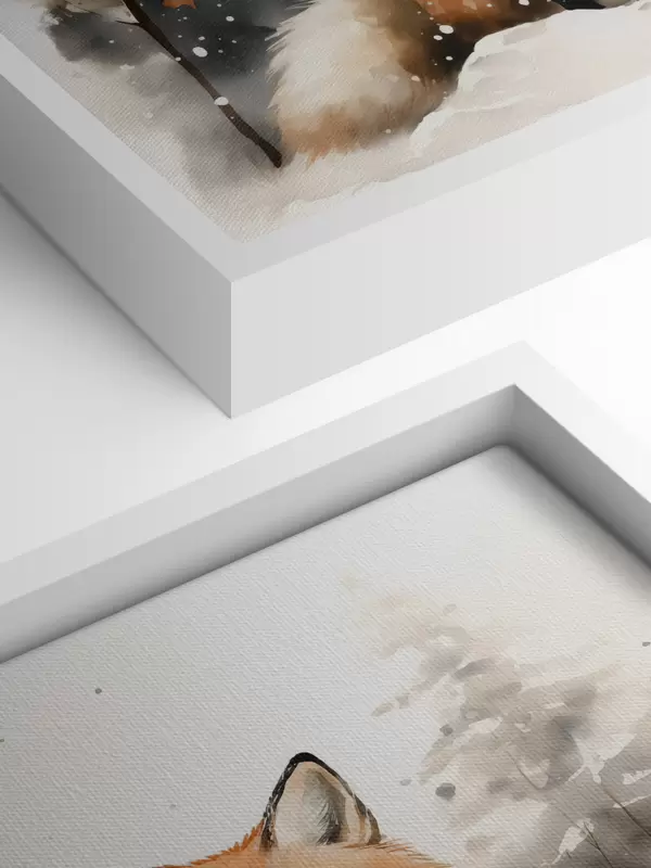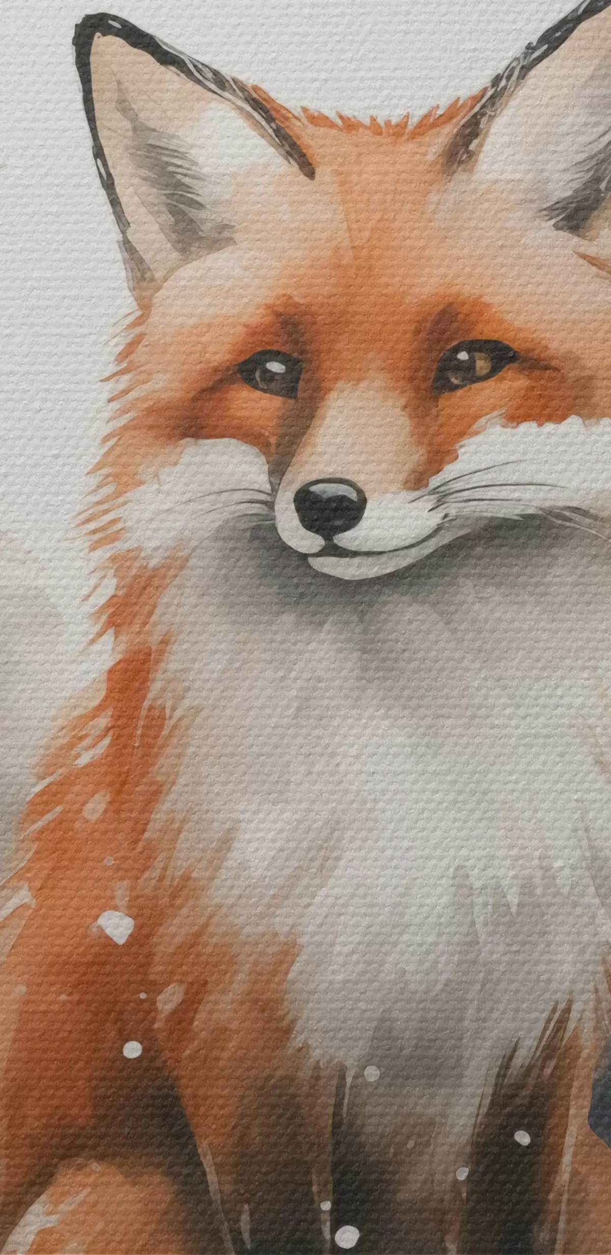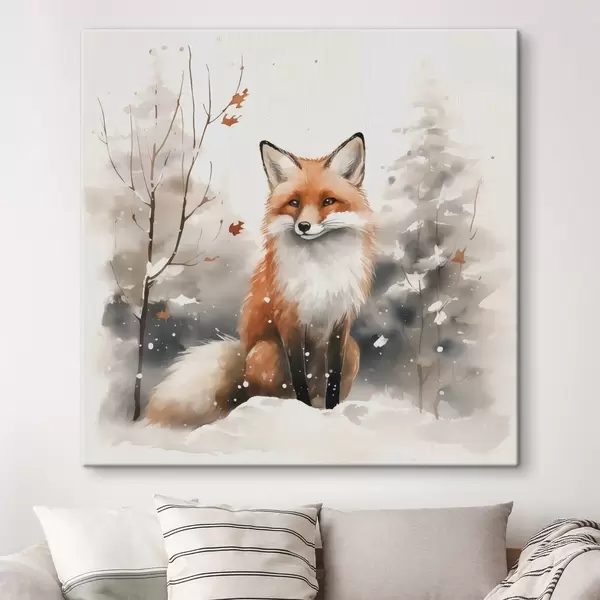 murales Cachorro de zorro en un bosque nevado imitación acuarela s42146