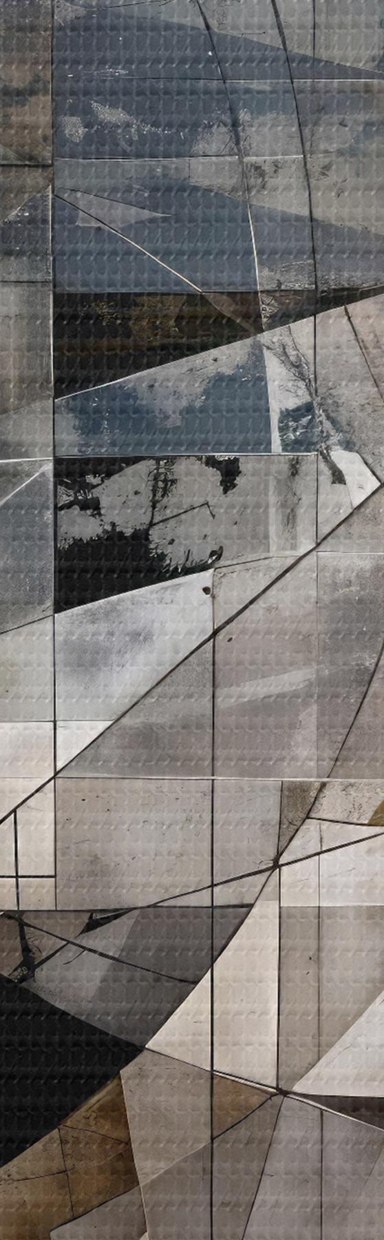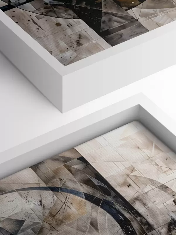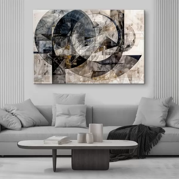 murales Una composición geométrica moderna y abstracta con formas superpuestas y estampado en tonos grises, negros y beige s42212