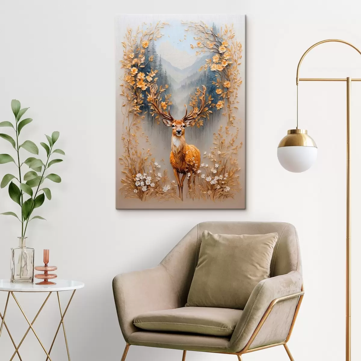 murales Ciervo con gran cornamenta sobre fondo de bosque s42252
