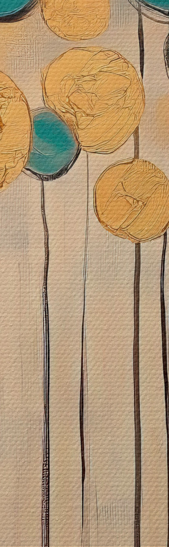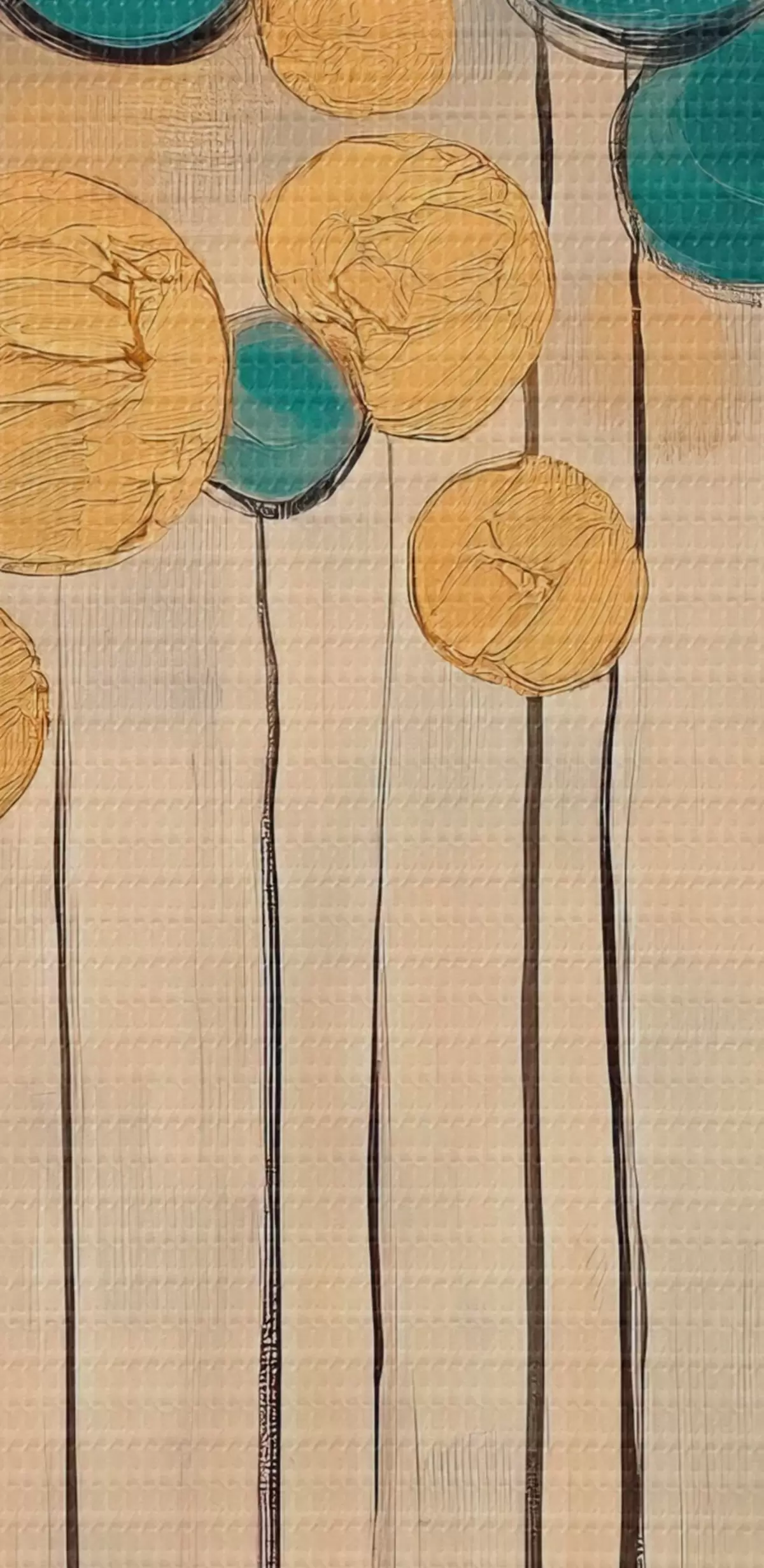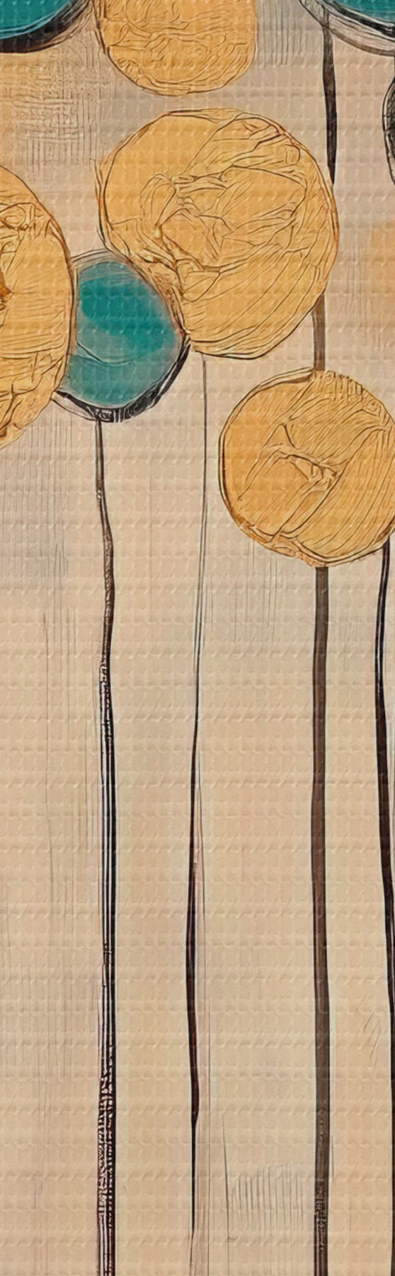 murales Abstracción decorativa con elementos redondos sobre fondo azul y beige s42476
