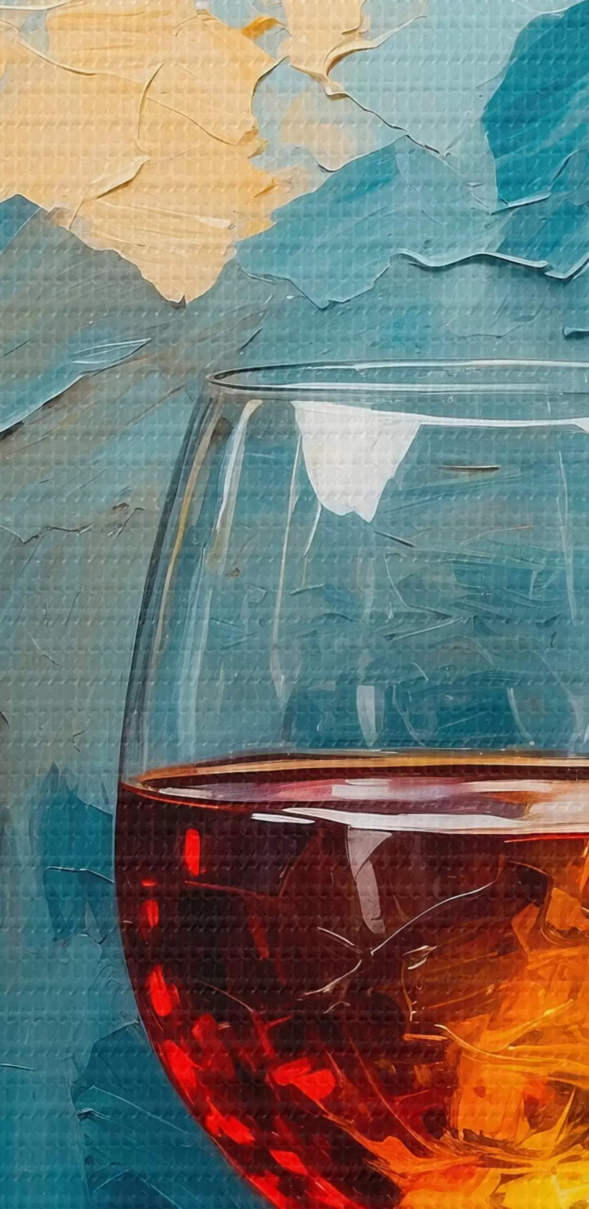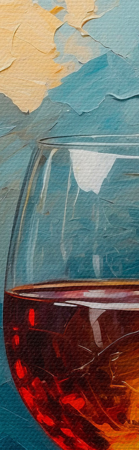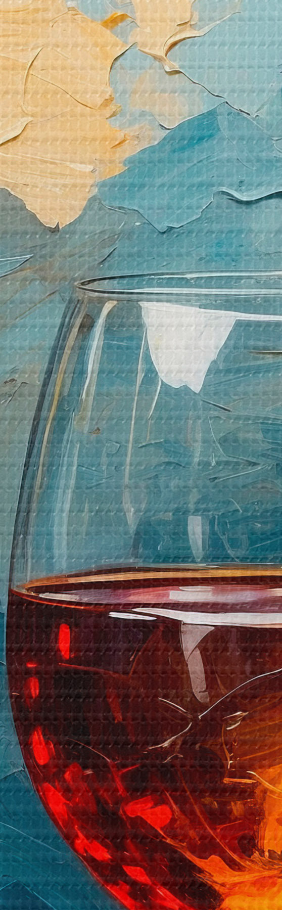murales Uvas, copa y botella de vino sobre fondo acrílico abstracto s42772