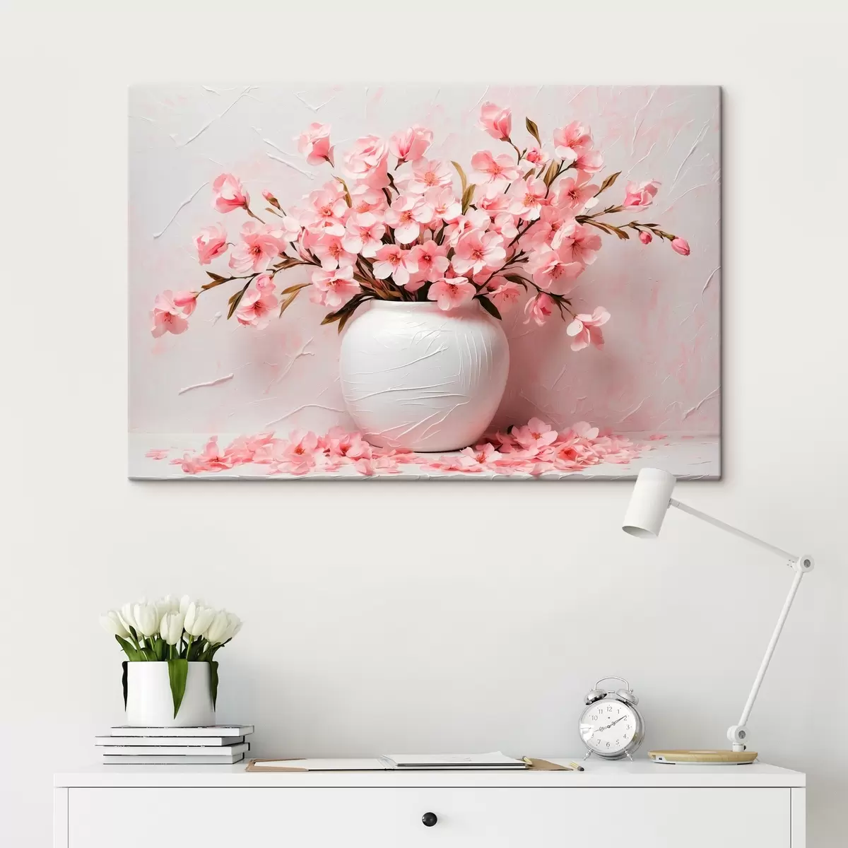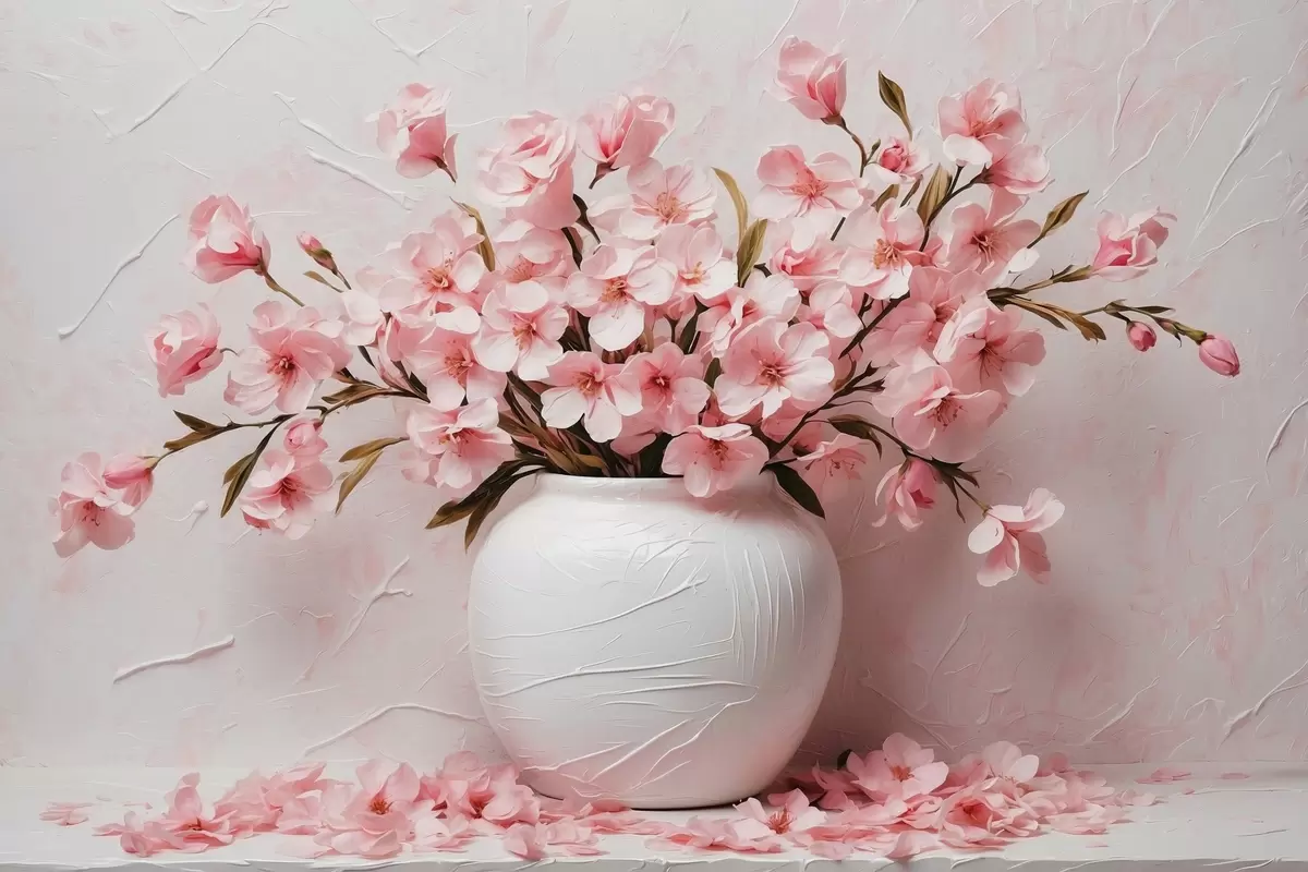 murales Flores rosas en jarrón blanco s42915