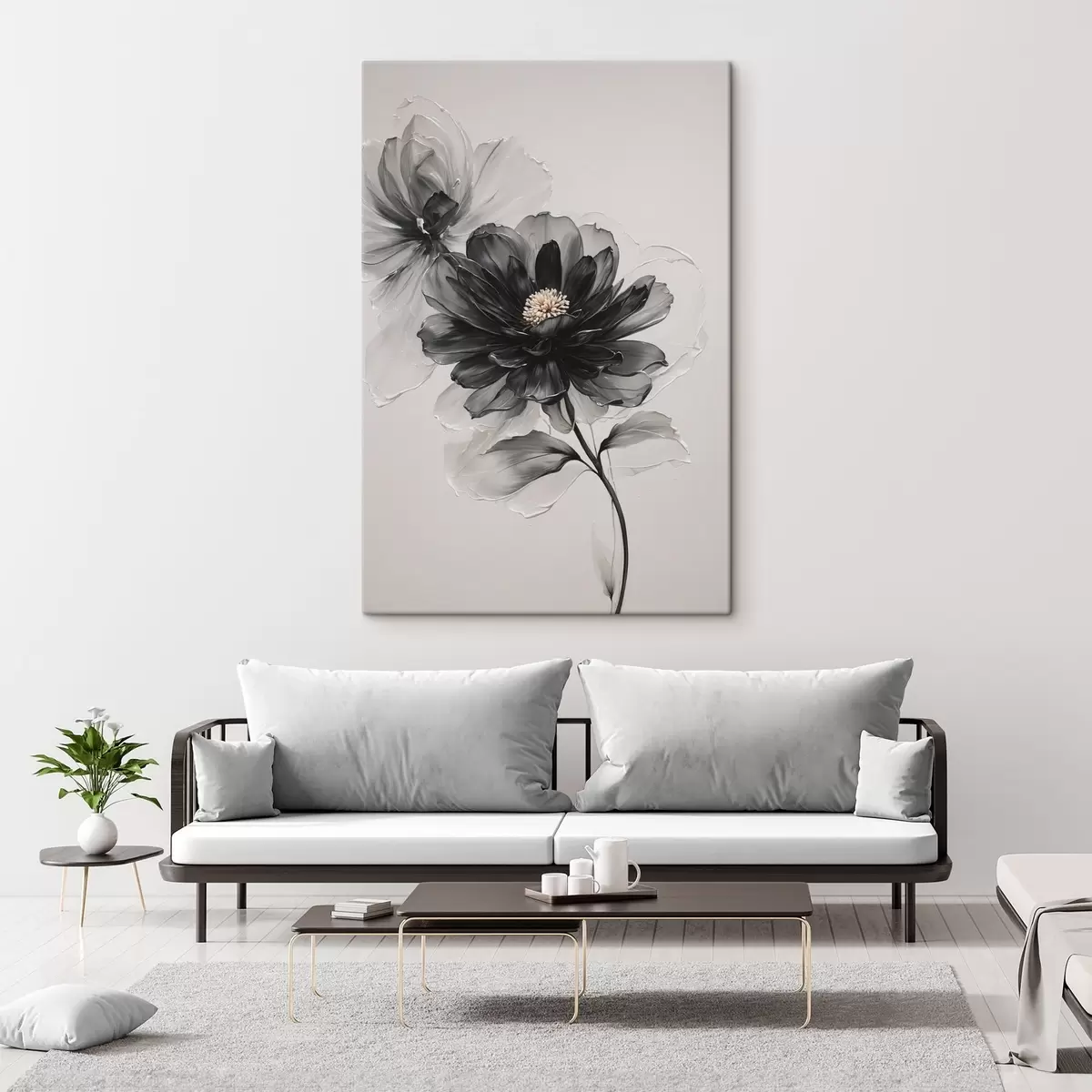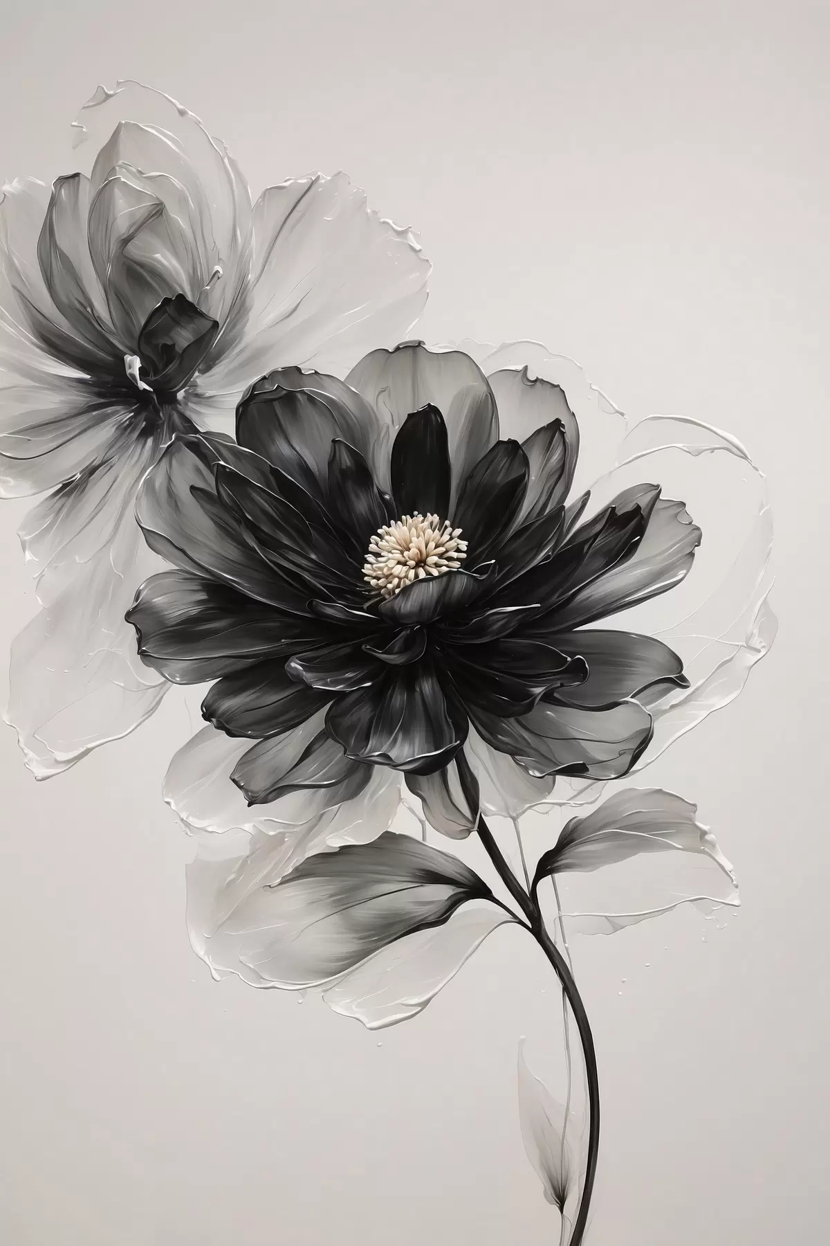 murales Flor negra transparente sobre fondo blanco s43099