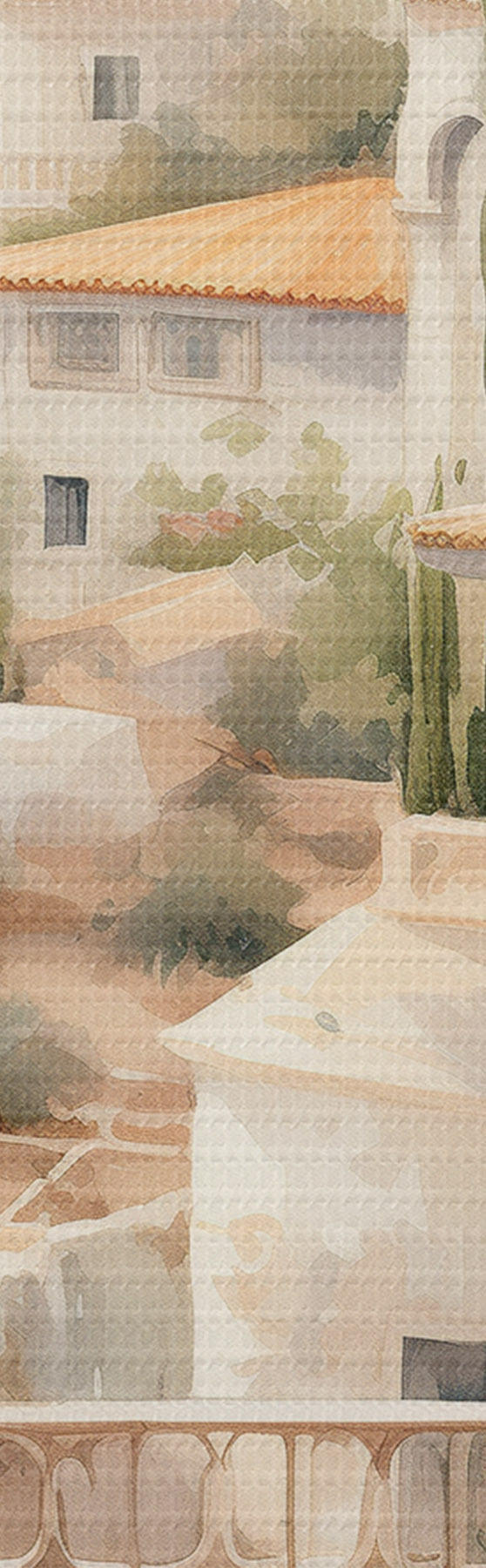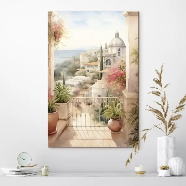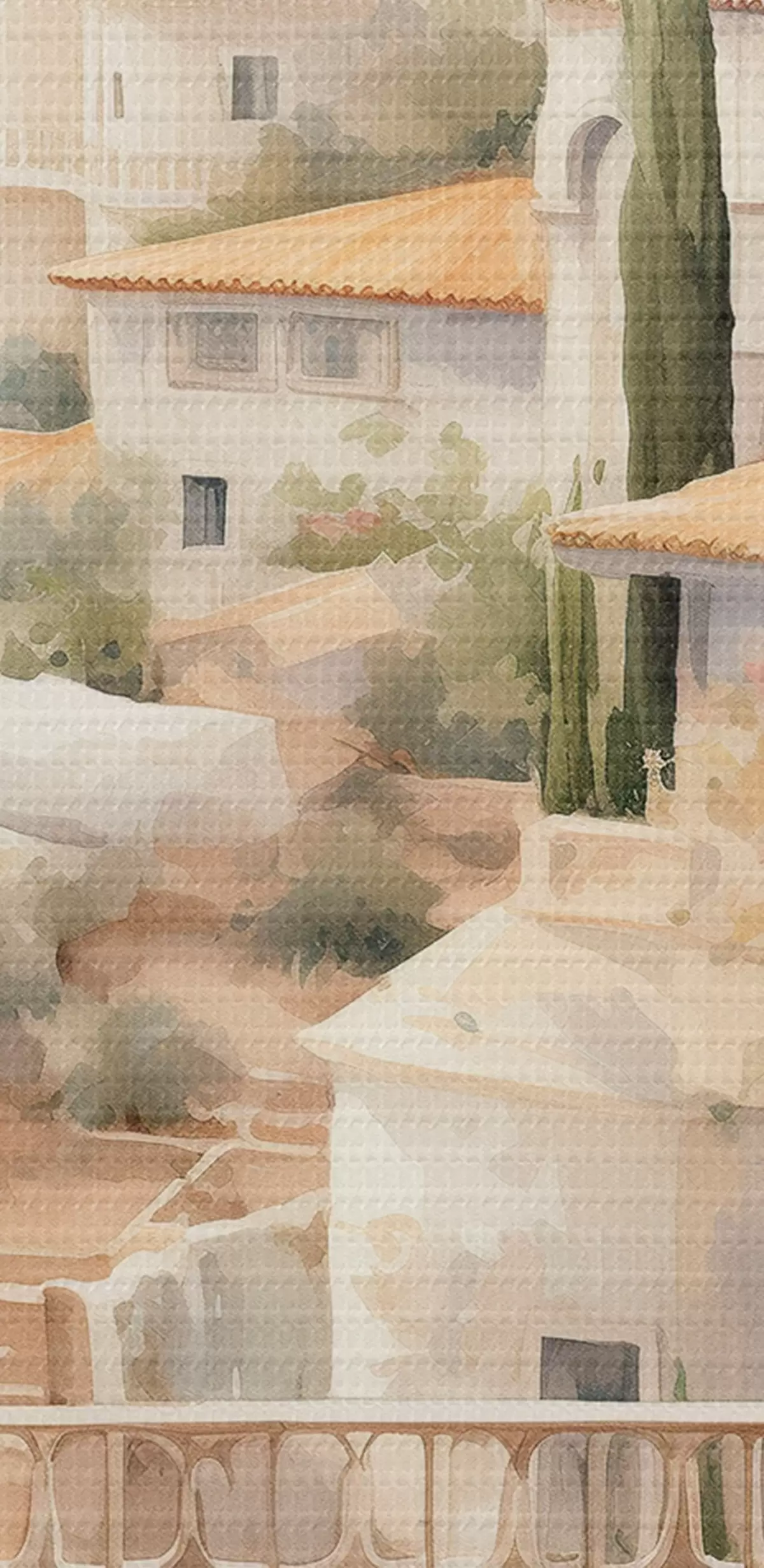murales Paisaje de verano en España, arquitectura mediterránea, estilo acuarela s43181