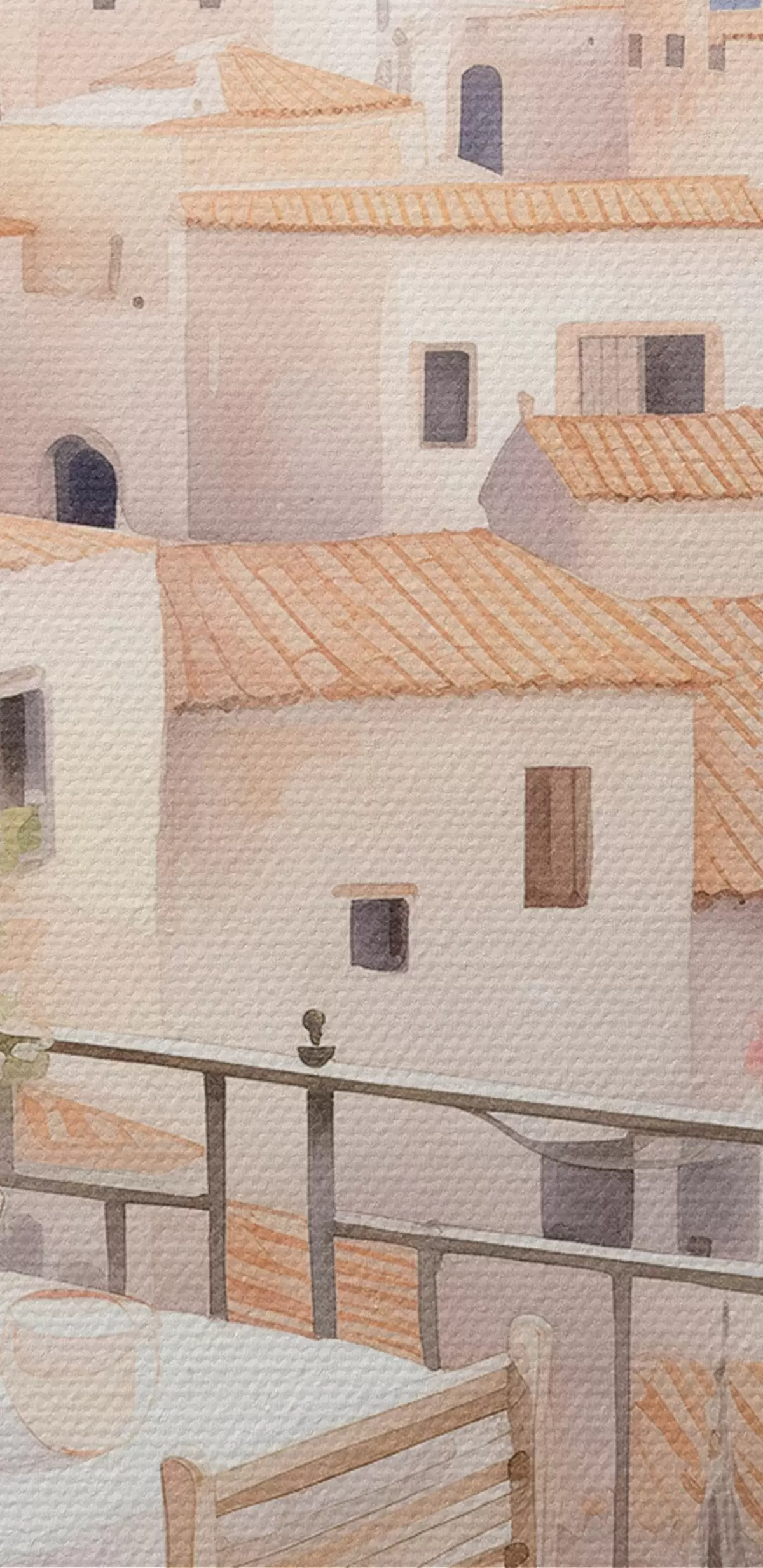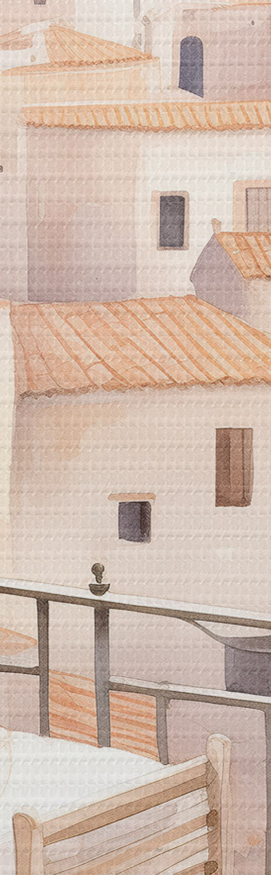 murales Puesta de sol en el balcón, Italia, arquitectura, flores en flor, estilo acuarela s43184