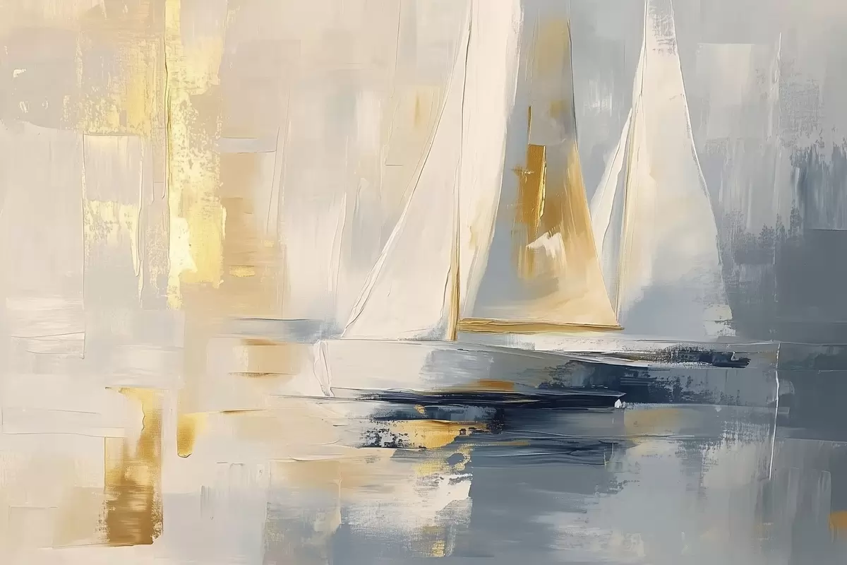 murales Abstracción con los veleros en el mar, estilo acrílico, puesta de sol s43500