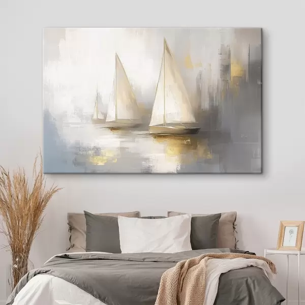 murales Barcos en el mar, abstracción, estilo óleo, colores beige s43505