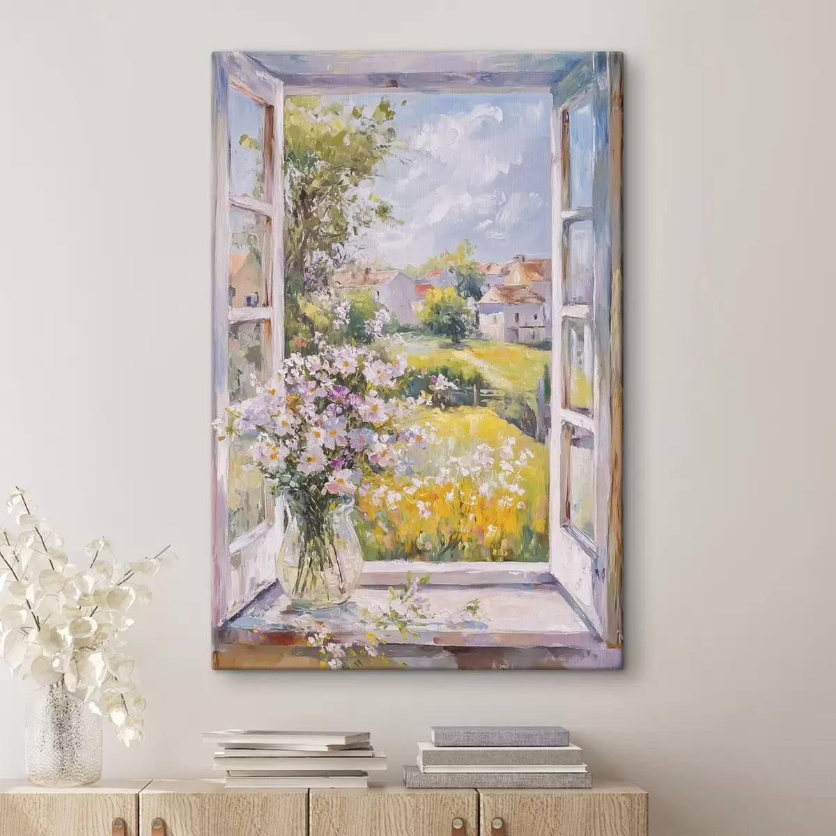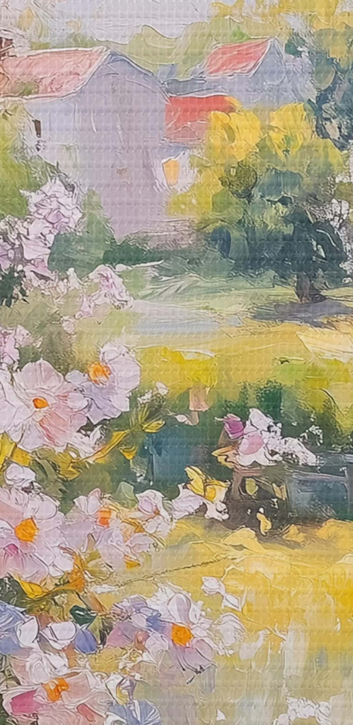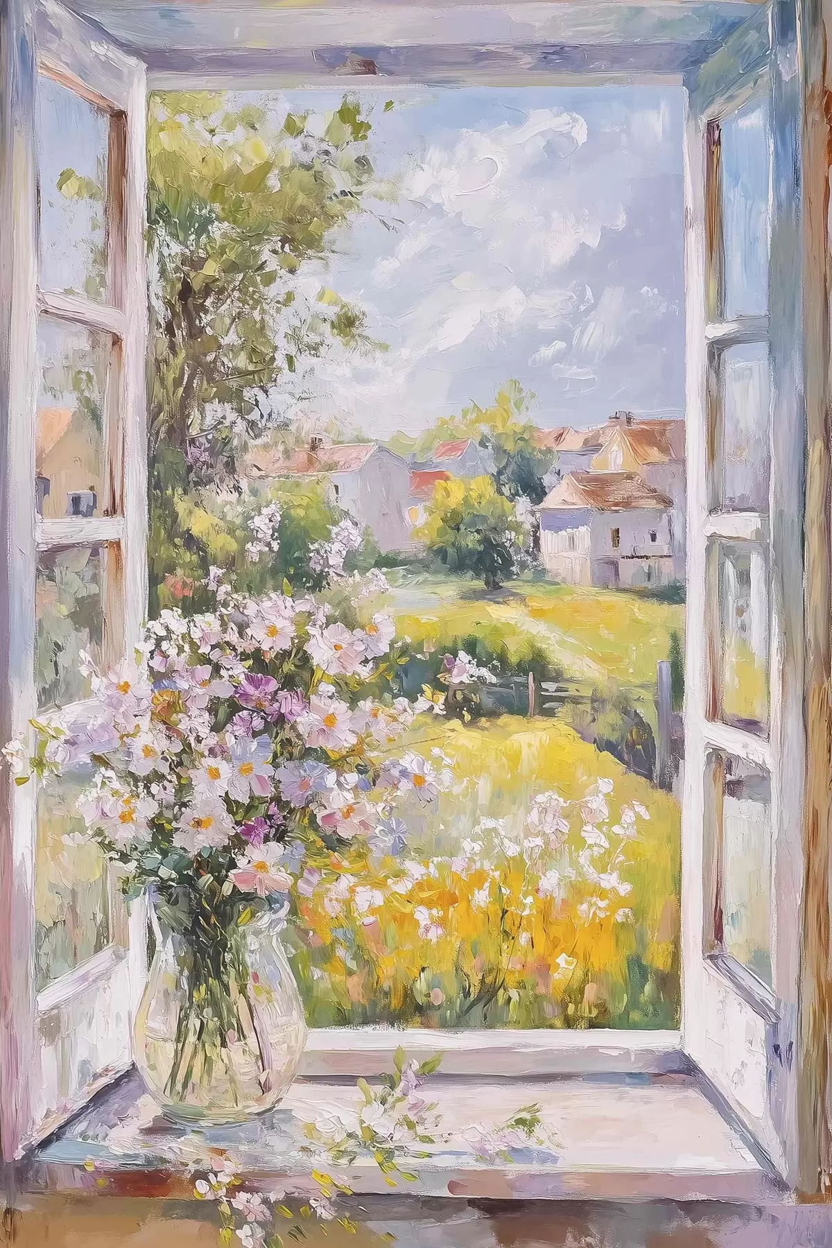 murales Verano en el pueblo, rústico, dibujo al óleo, flores en jarrón s43889