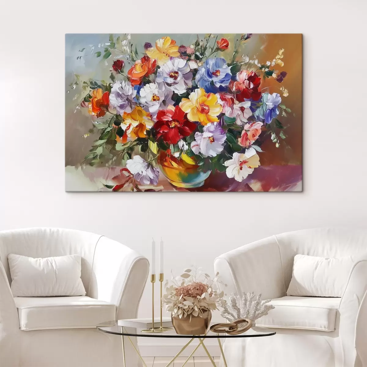 Hay tres tipos de material disponibles para pedidos: Lienzo Económico - material denso y duradero para impresión digital, idéntico al lienzo de pintor, superficie impermeable, reproducción realista de los detalles, material de grano medio. Lienzo Premium - la textura se asemeja a la de un lienzo de pintor (pequeños hilos entrelazados). Reproducción suave y detallada de la imagen sobre una superficie mate. Eco-Premium - tejido 100% algodón de alta calidad. Gracias a las fibras naturales de algodón, el material es duradero y resistente al desgaste. Excelente reproducción del color y el detalle.