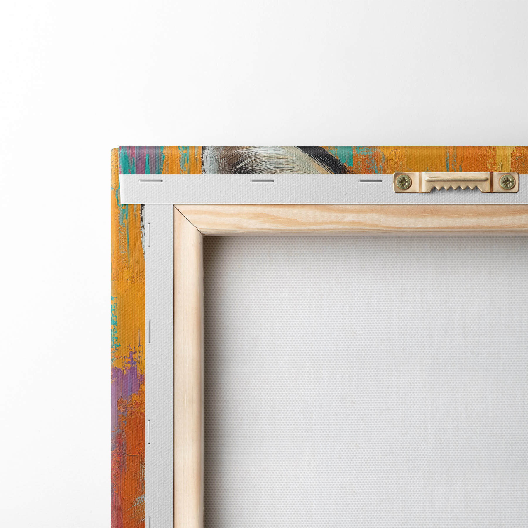 Vendemos cuadros en bastidor: se trata de un marco de madera sobre el que se extiende el lienzo. Este cuadro no necesita marco; puedes colgarlo directamente en la pared.