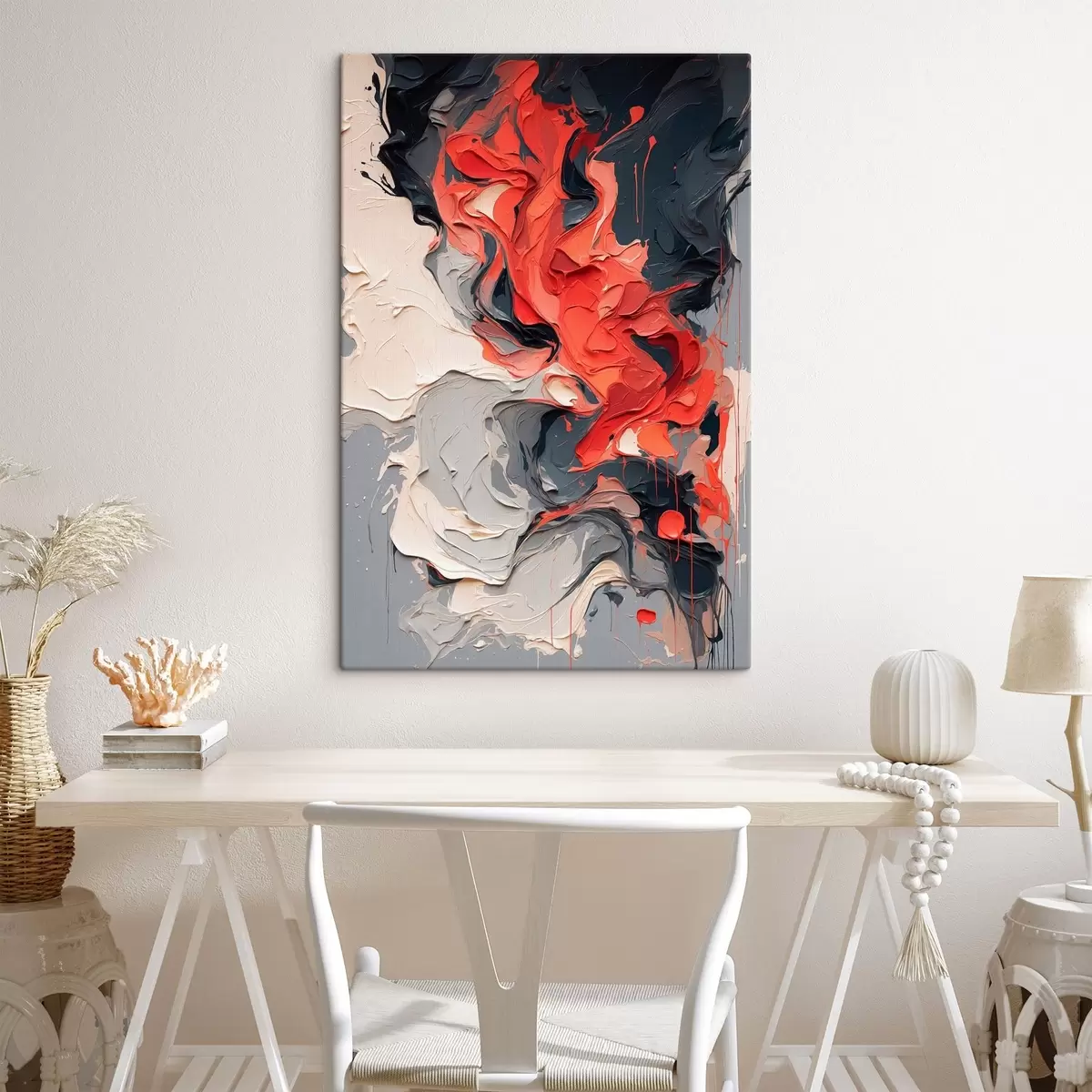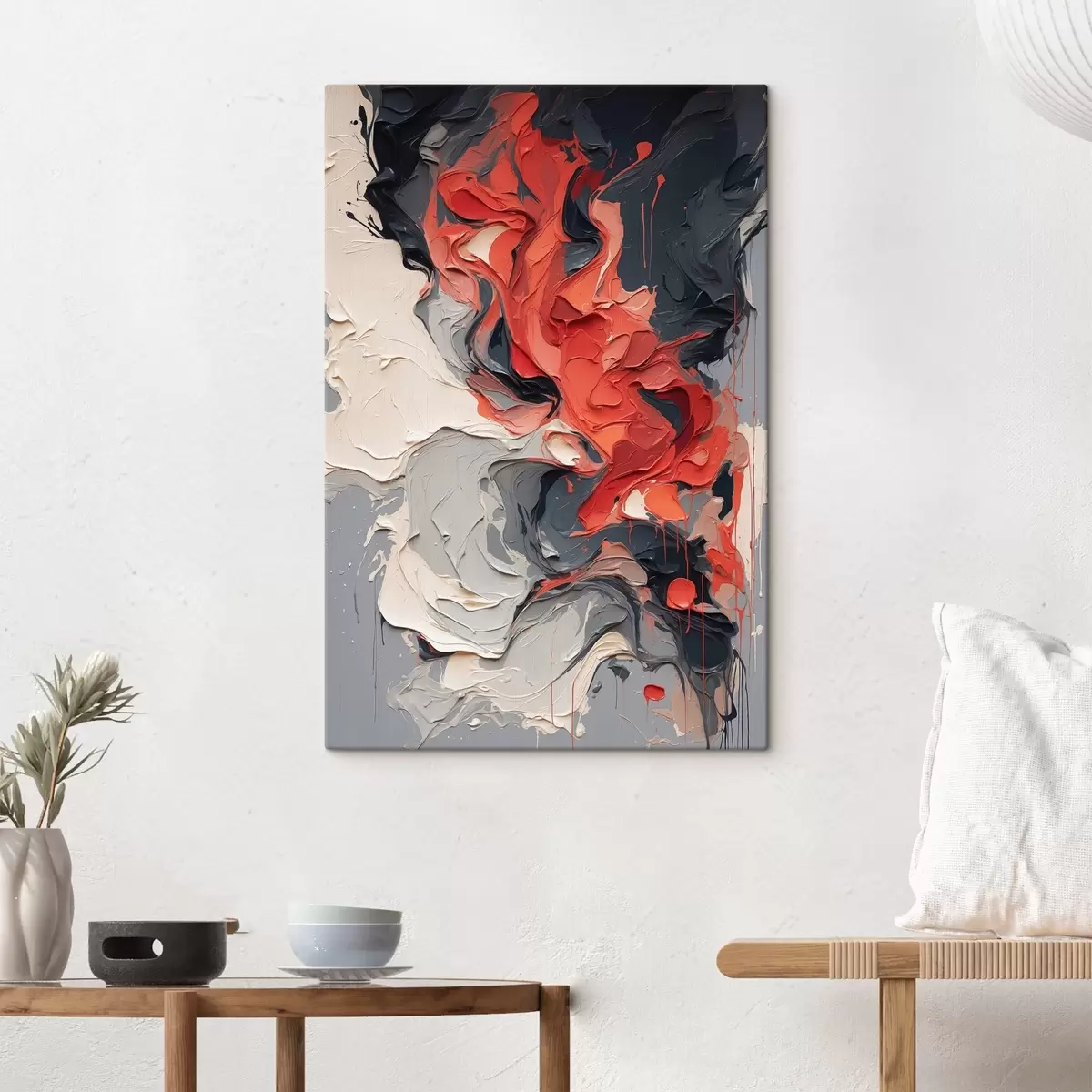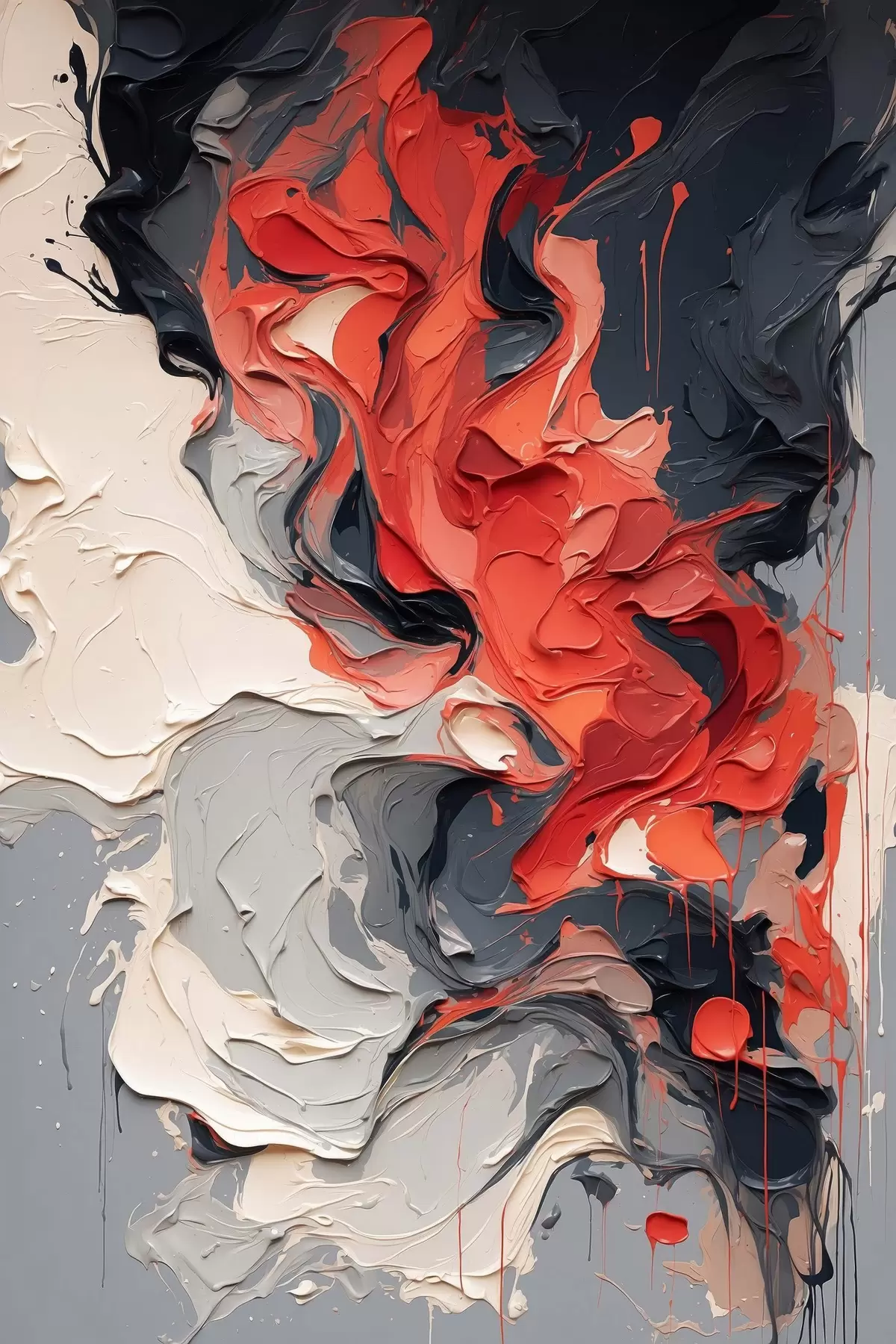 murales Óleo abstracto en colores rojo, negro y gris s44079