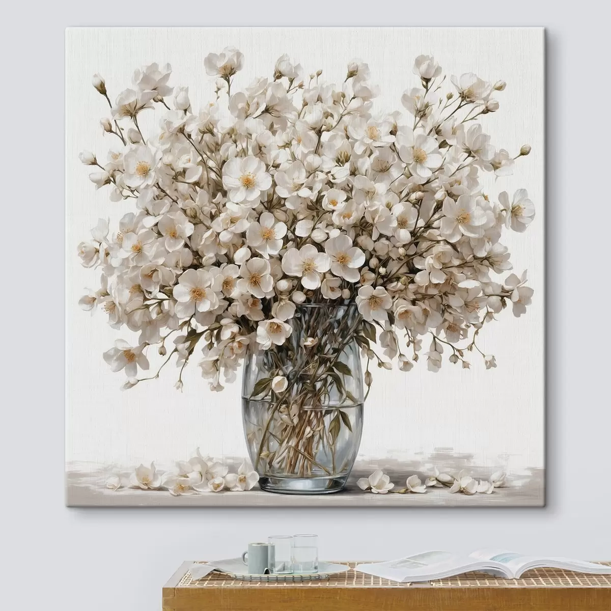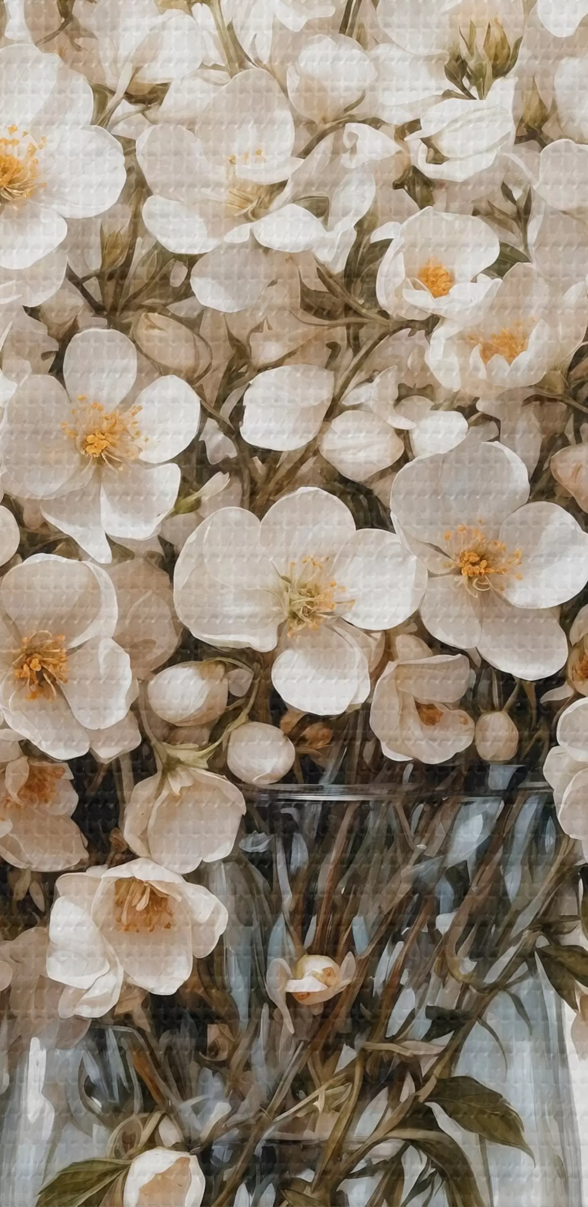murales Flores blancas en jarrón transparente s44092