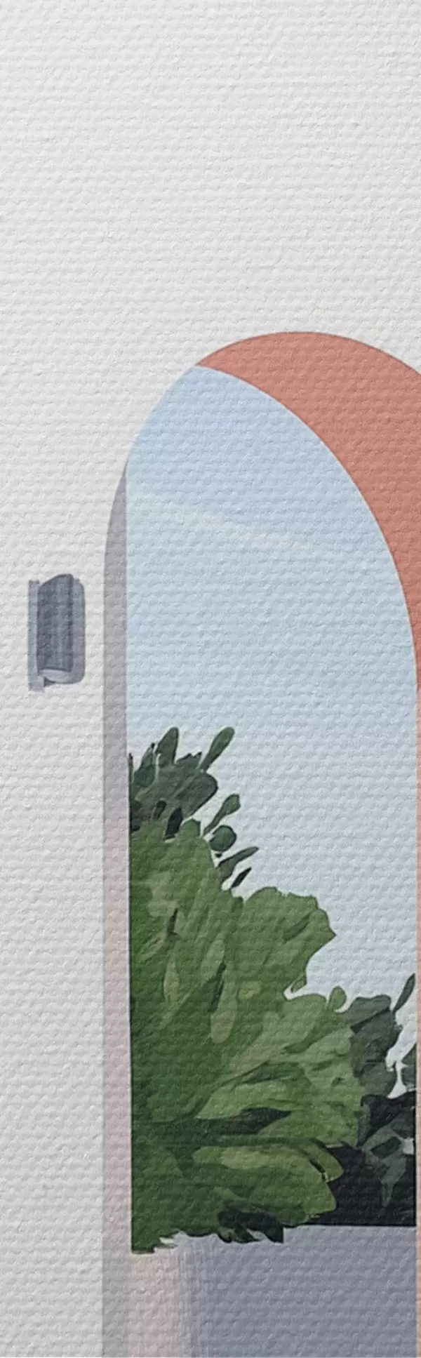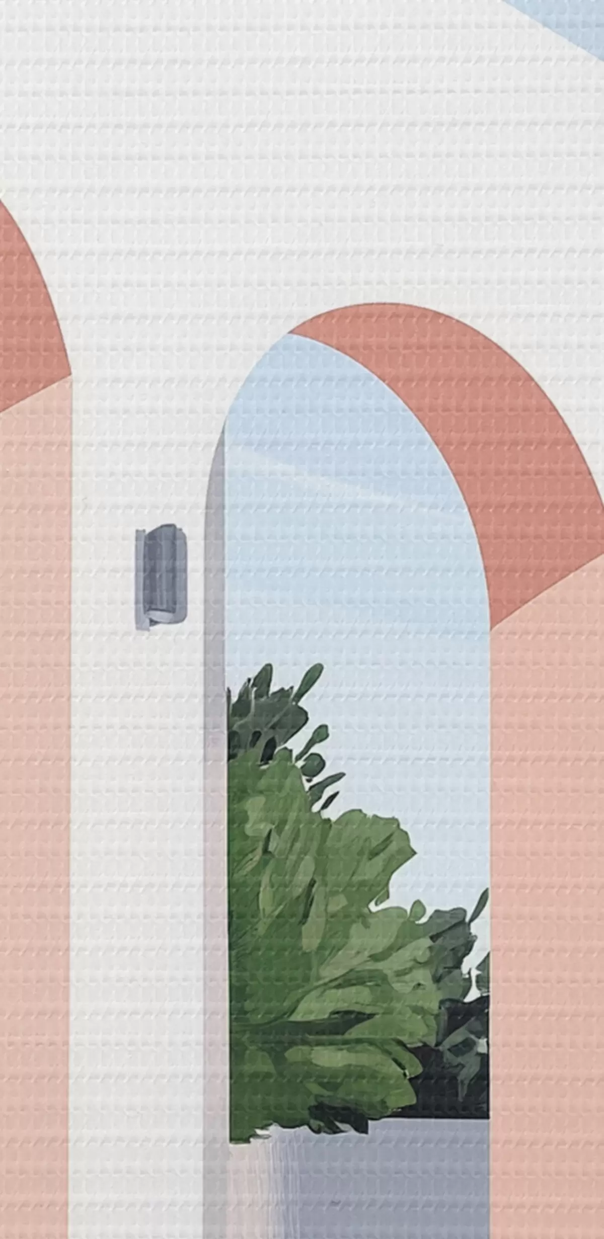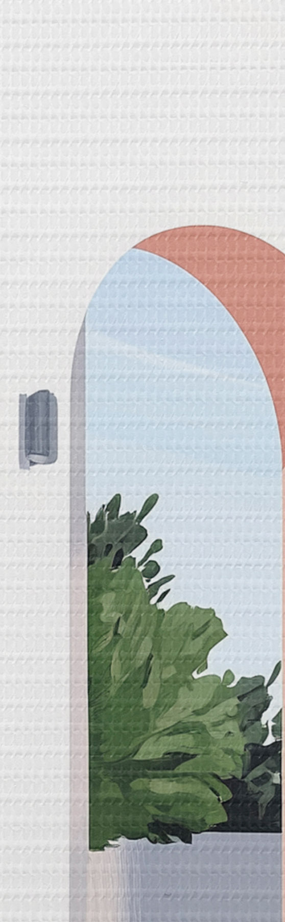 murales Chalet blanco con arcos y jardín tropical, mediterráneo, estilo llano s44153