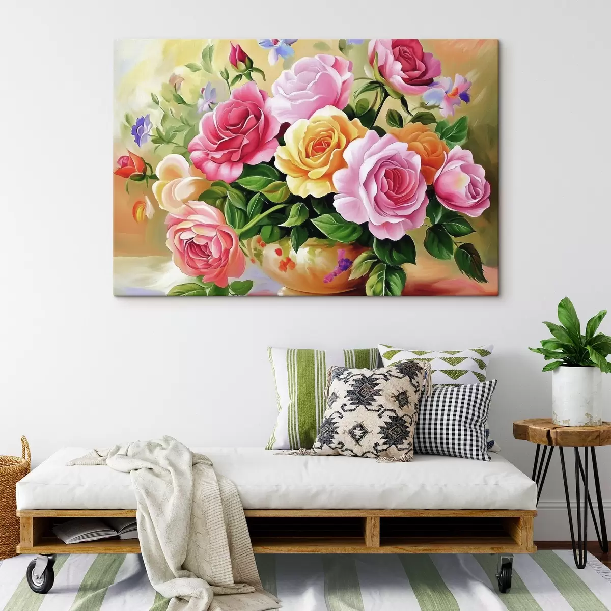 Hay tres tipos de material disponibles para pedidos: Lienzo Económico - material denso y duradero para impresión digital, idéntico al lienzo de pintor, superficie impermeable, reproducción realista de los detalles, material de grano medio. Lienzo Premium - la textura se asemeja a la de un lienzo de pintor (pequeños hilos entrelazados). Reproducción suave y detallada de la imagen sobre una superficie mate. Eco-Premium - tejido 100% algodón de alta calidad. Gracias a las fibras naturales de algodón, el material es duradero y resistente al desgaste. Excelente reproducción del color y el detalle.