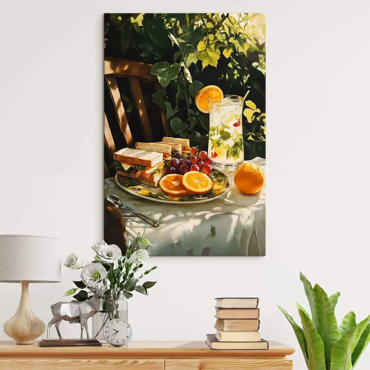 murales Estético picnic en el jardín de verano, bocadillos, naranjas, limonada s44306