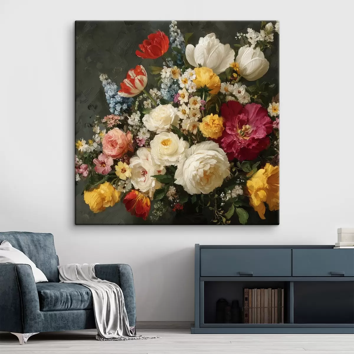Hay tres tipos de material disponibles para pedidos: Lienzo Económico - material denso y duradero para impresión digital, idéntico al lienzo de pintor, superficie impermeable, reproducción realista de los detalles, material de grano medio. Lienzo Premium - la textura se asemeja a la de un lienzo de pintor (pequeños hilos entrelazados). Reproducción suave y detallada de la imagen sobre una superficie mate. Eco-Premium - tejido 100% algodón de alta calidad. Gracias a las fibras naturales de algodón, el material es duradero y resistente al desgaste. Excelente reproducción del color y el detalle.