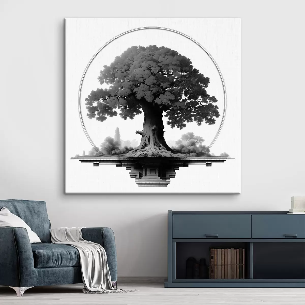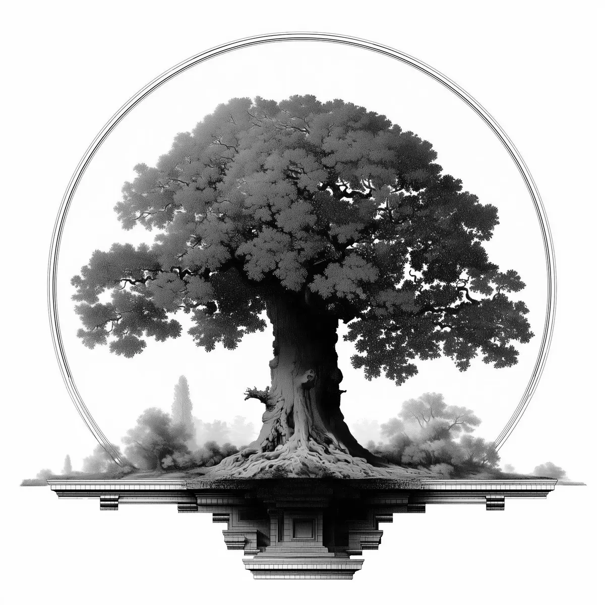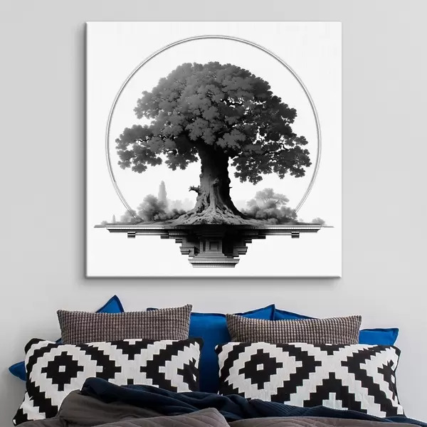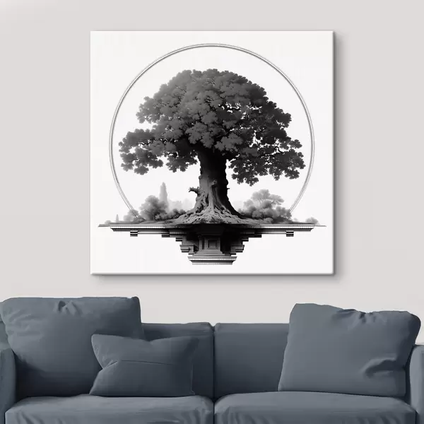 murales Árbol monocromo de tronco imponente y copa extendida s44346