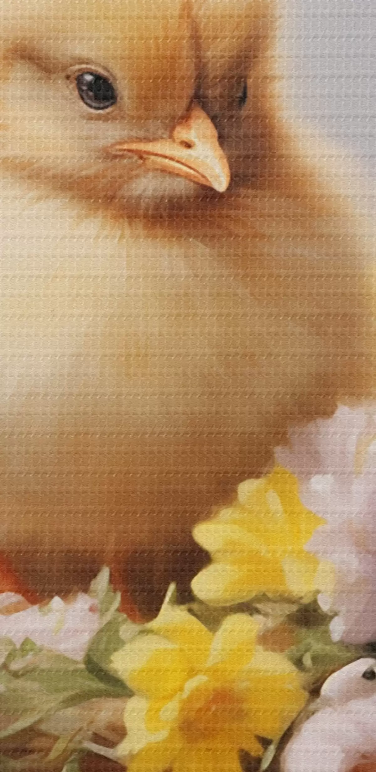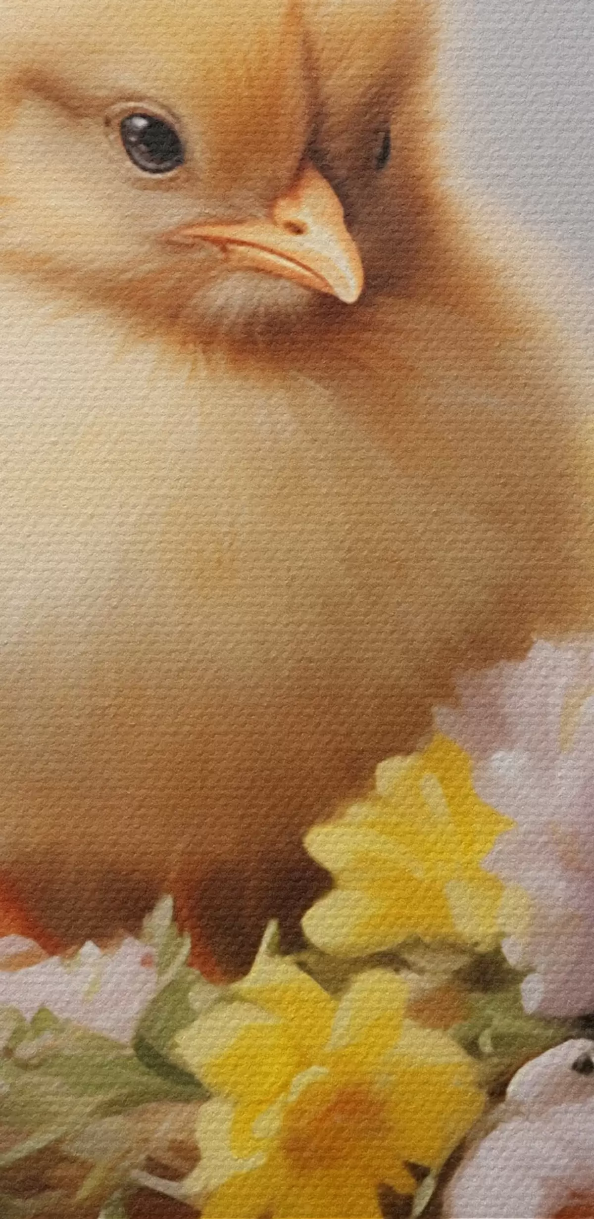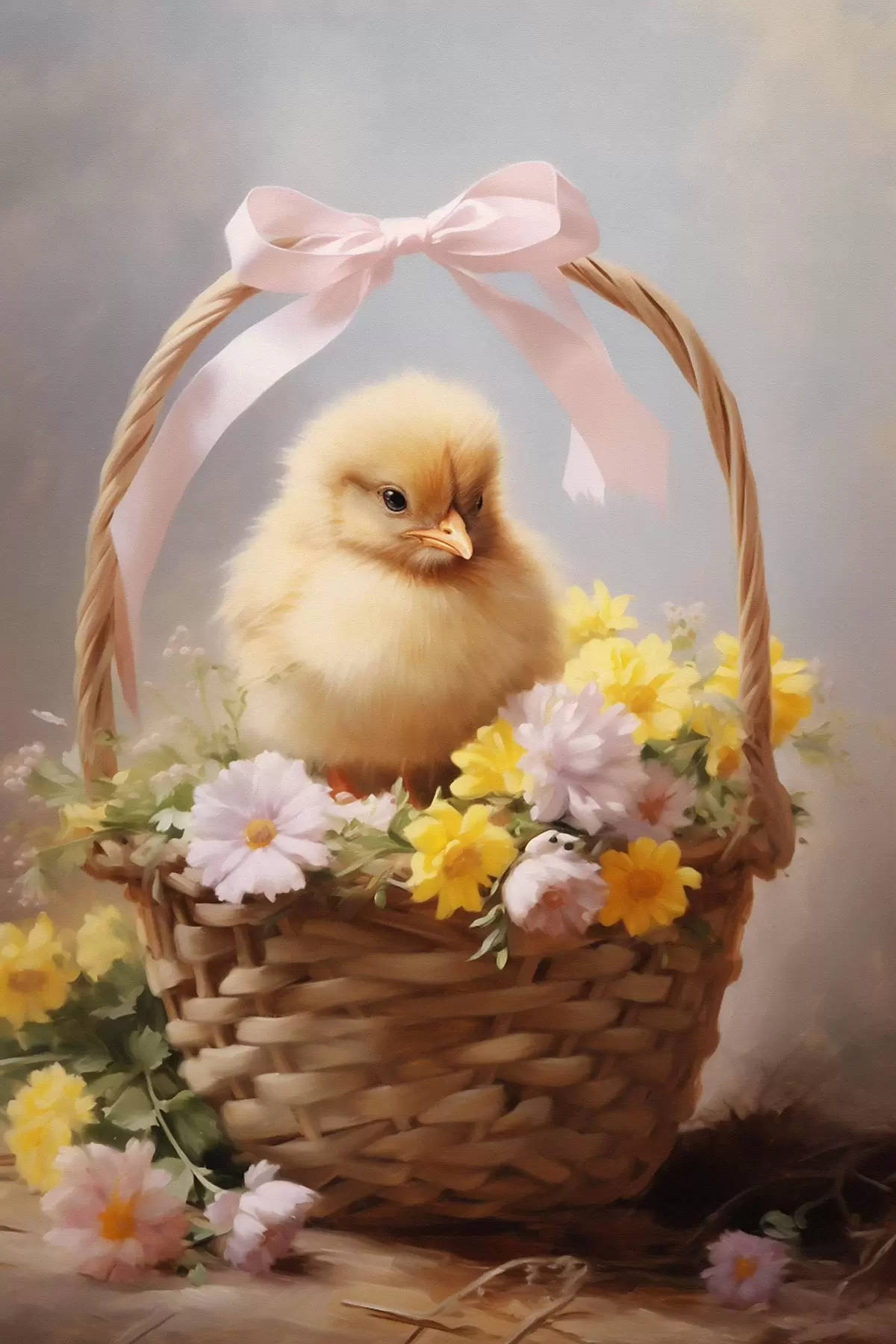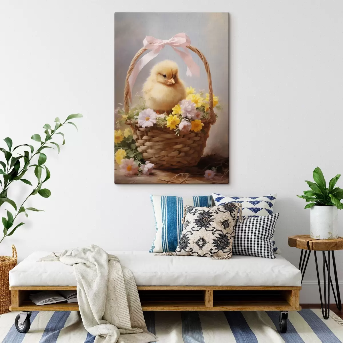 murales Pollito amarillo en una cesta con flores silvestres s44384