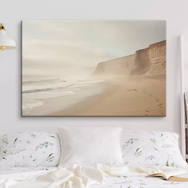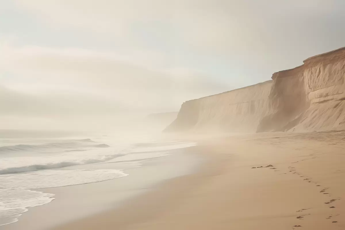 murales Paisaje de una playa de arena con un acantilado en un día claro y soleado s44391