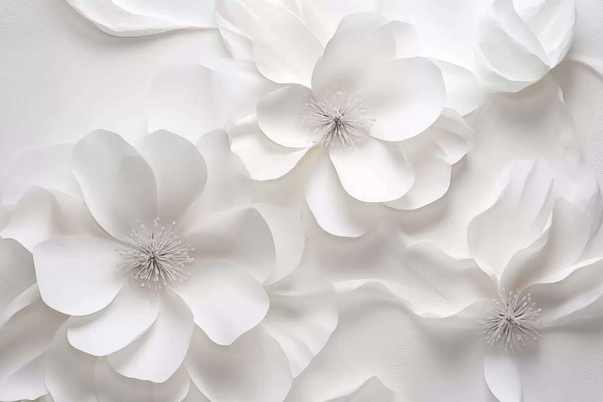 murales Flores decorativas blancas con pétalos delicados y estambres intrincados s44406