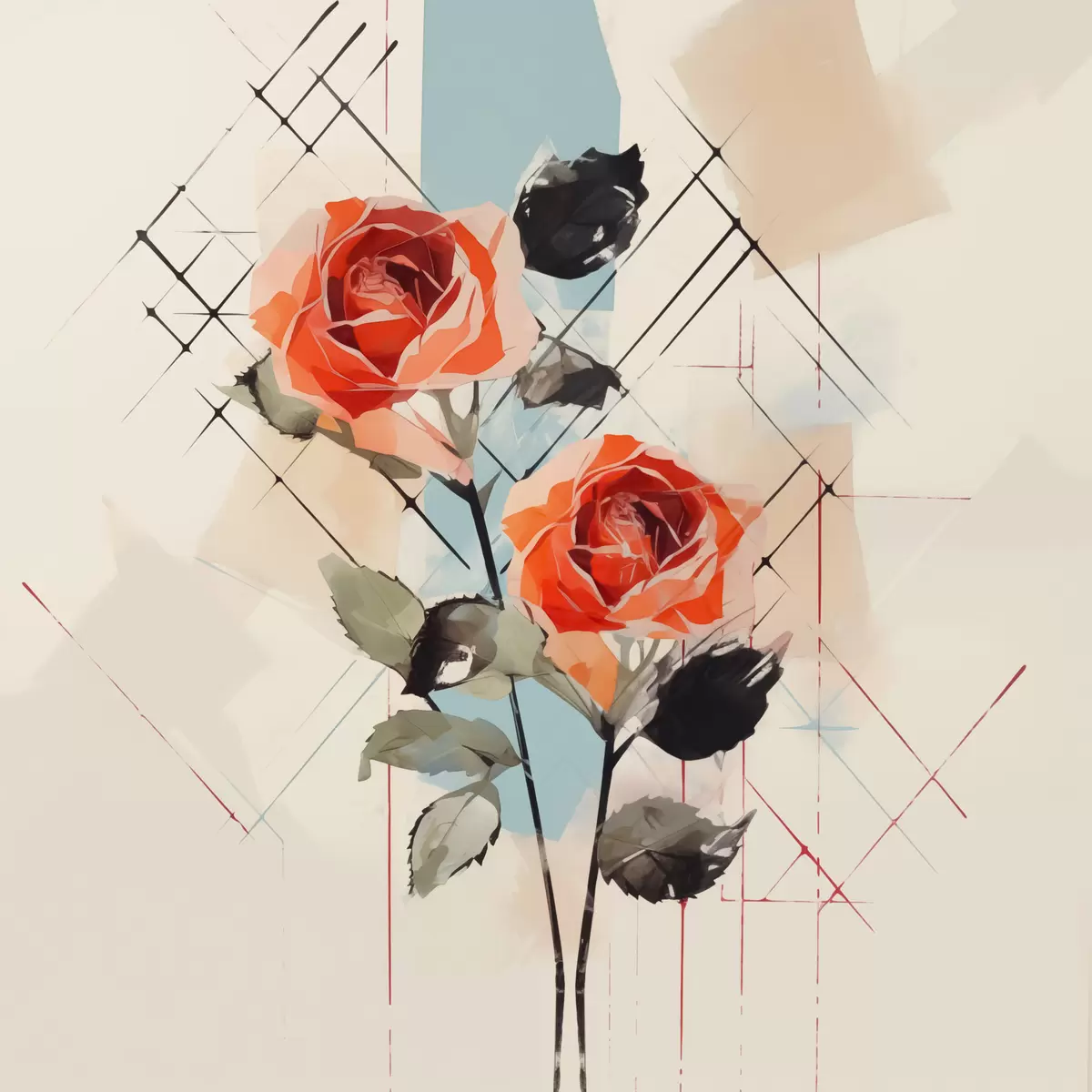 murales Rosas sobre un fondo de líneas y manchas s44421