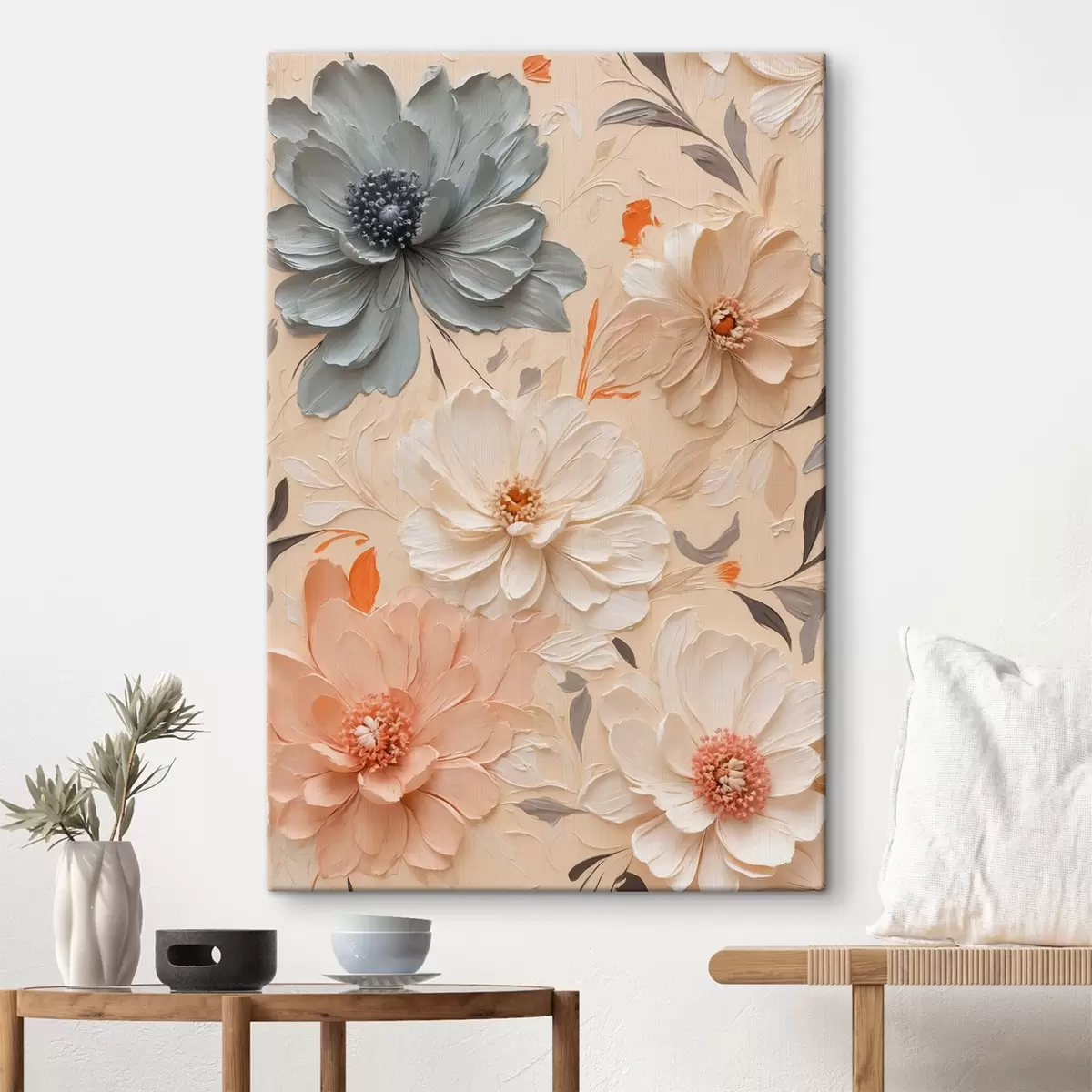 Hay tres tipos de material disponibles para pedidos: Lienzo Económico - material denso y duradero para impresión digital, idéntico al lienzo de pintor, superficie impermeable, reproducción realista de los detalles, material de grano medio. Lienzo Premium - la textura se asemeja a la de un lienzo de pintor (pequeños hilos entrelazados). Reproducción suave y detallada de la imagen sobre una superficie mate. Eco-Premium - tejido 100% algodón de alta calidad. Gracias a las fibras naturales de algodón, el material es duradero y resistente al desgaste. Excelente reproducción del color y el detalle.