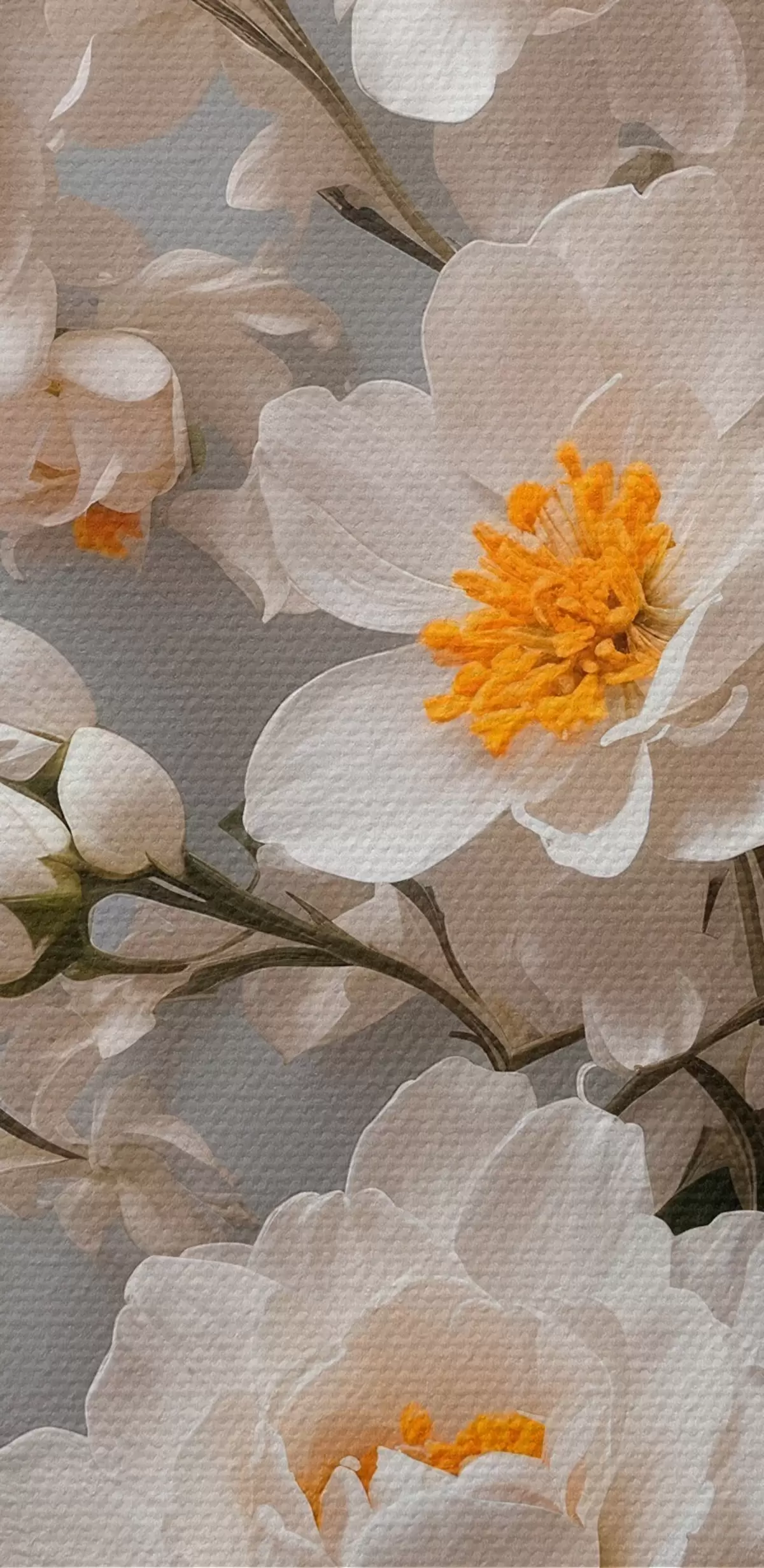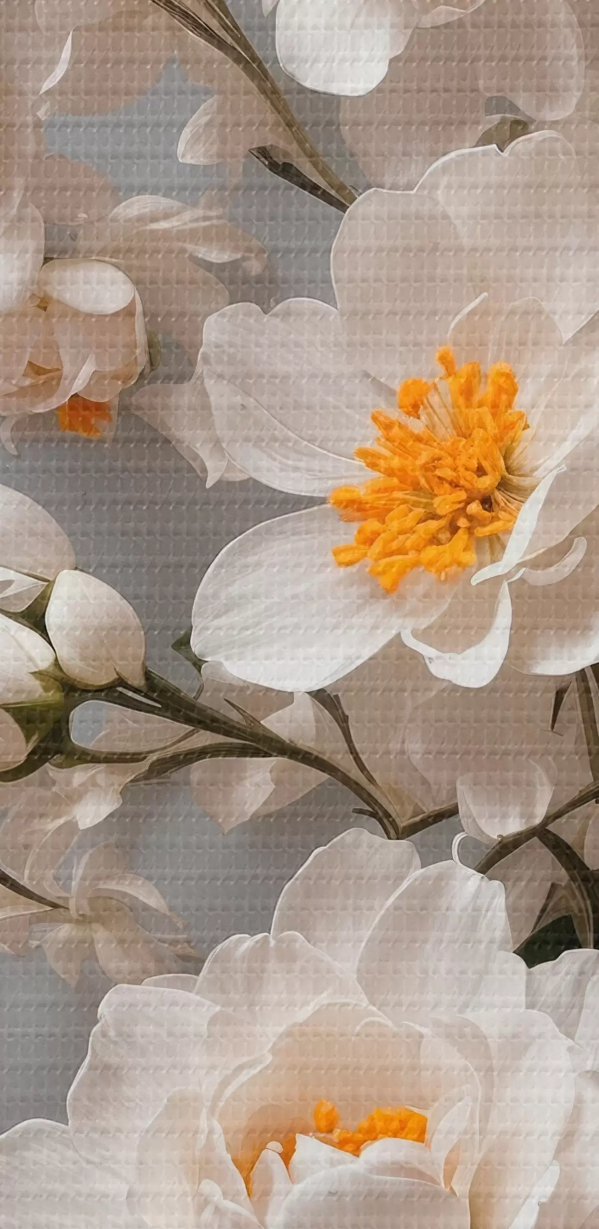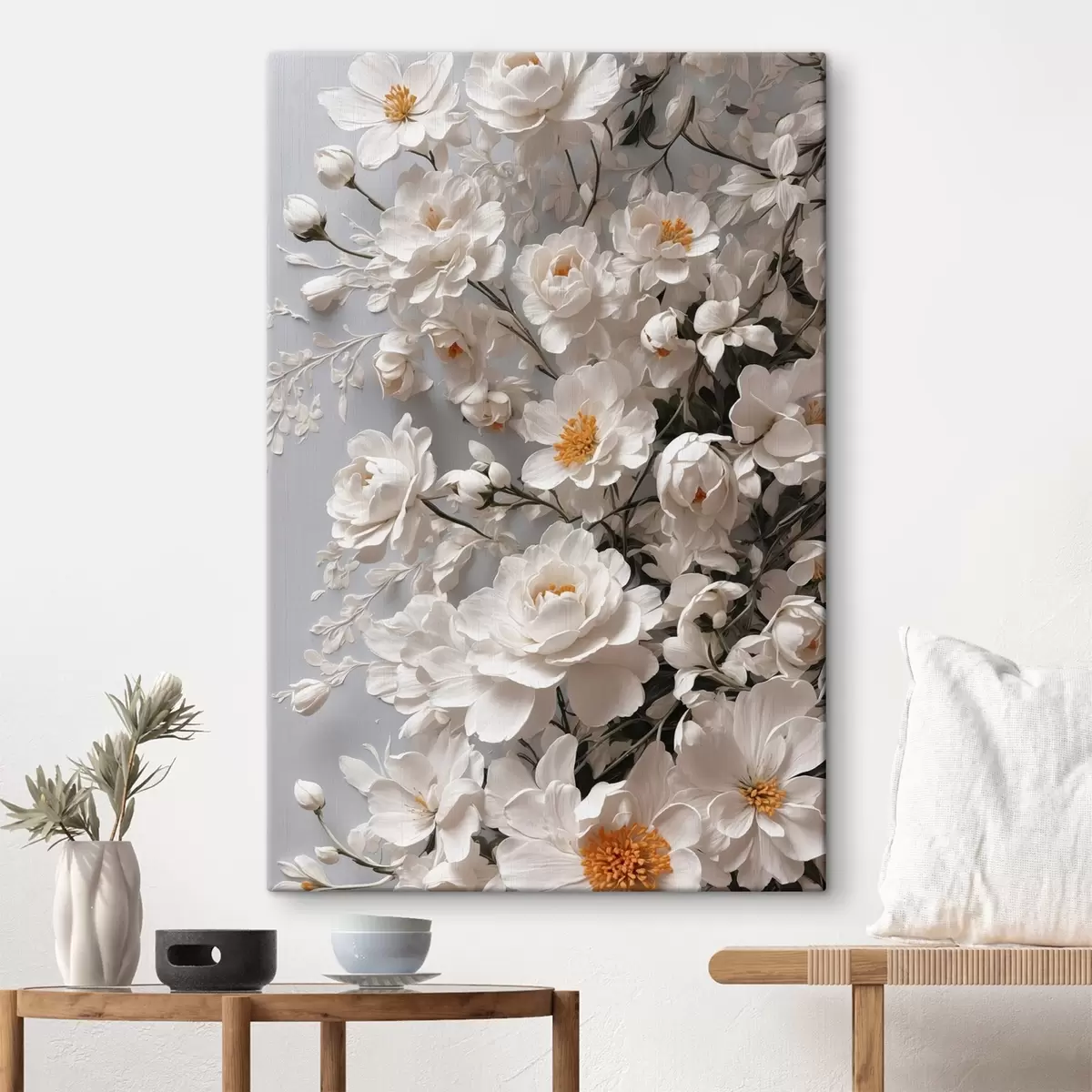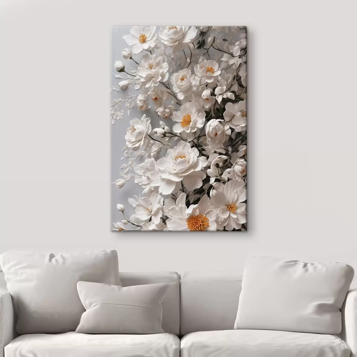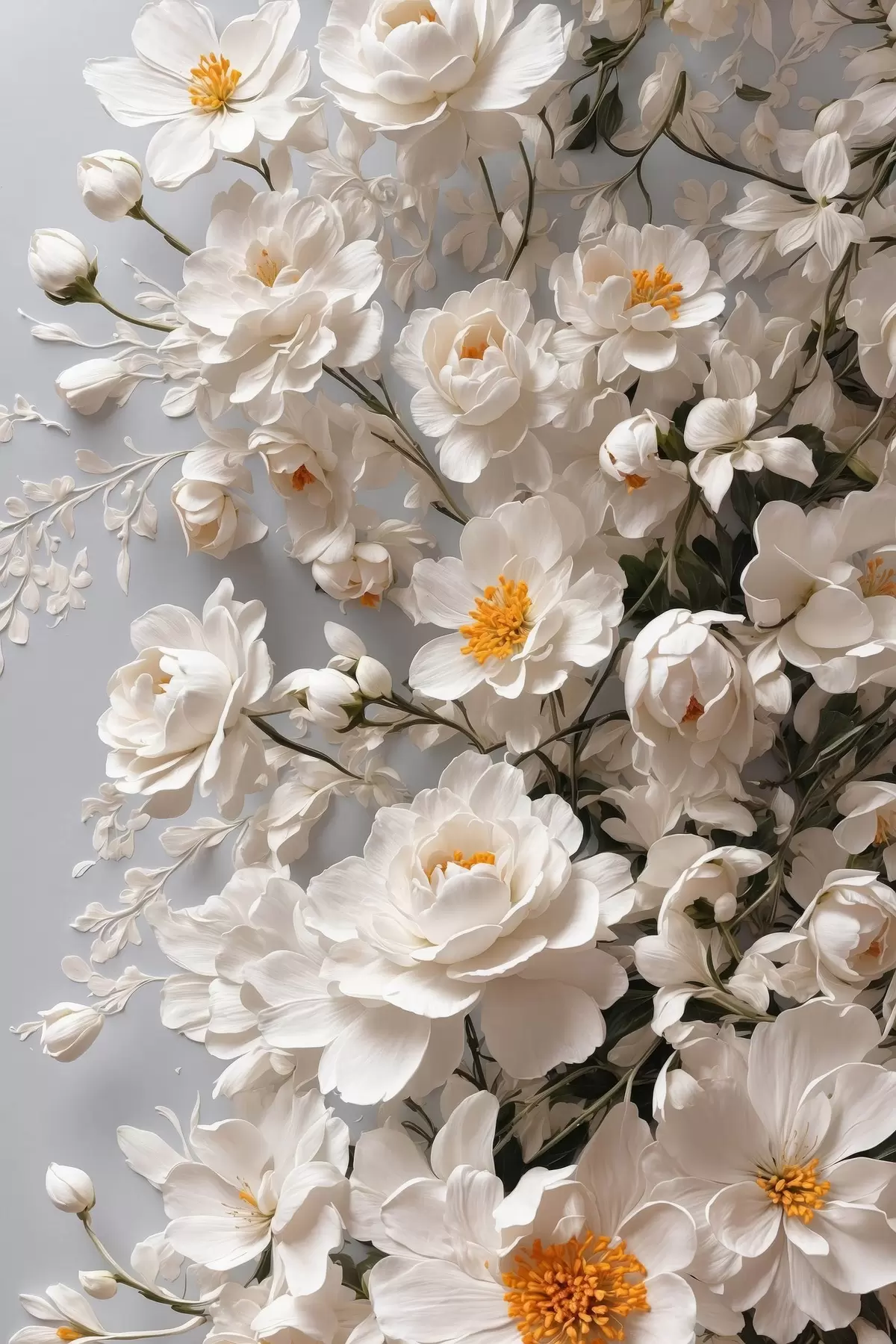 murales Flores y hojas blancas sobre fondo blanco s44465
