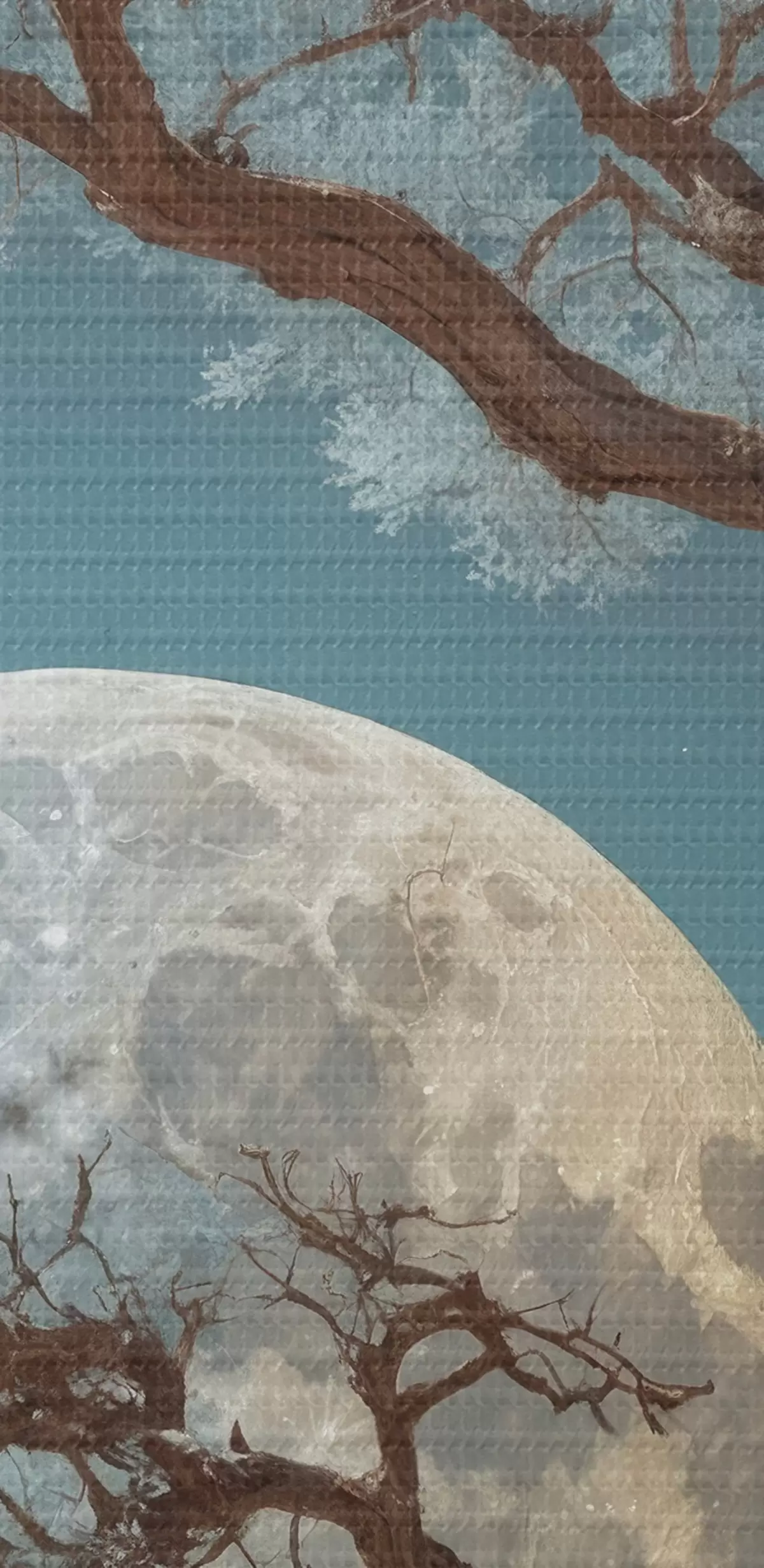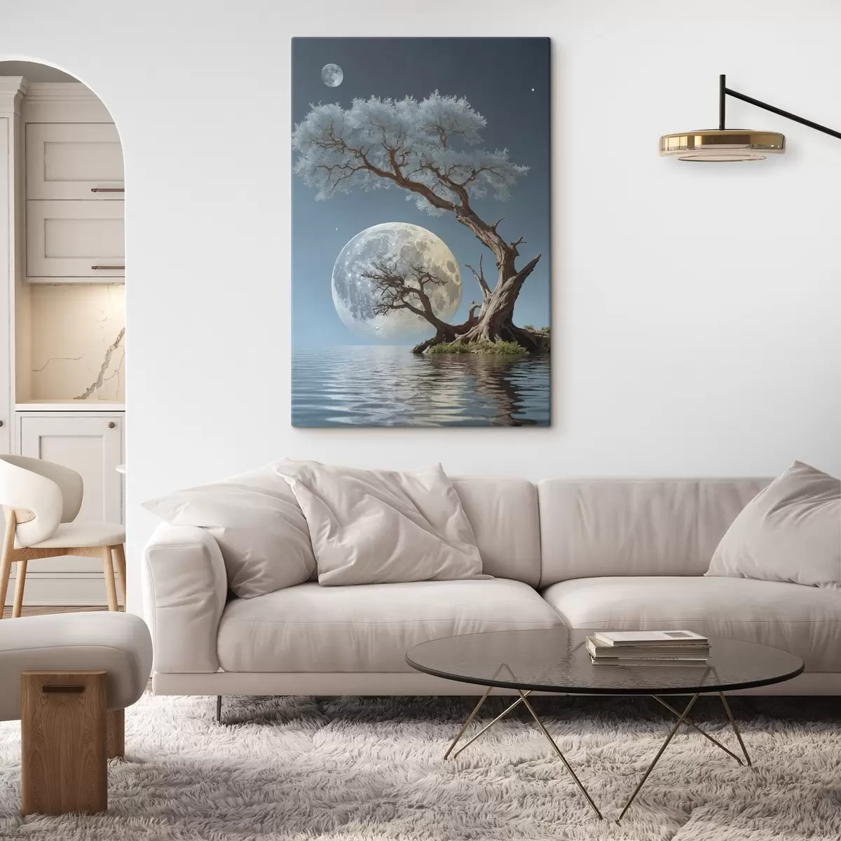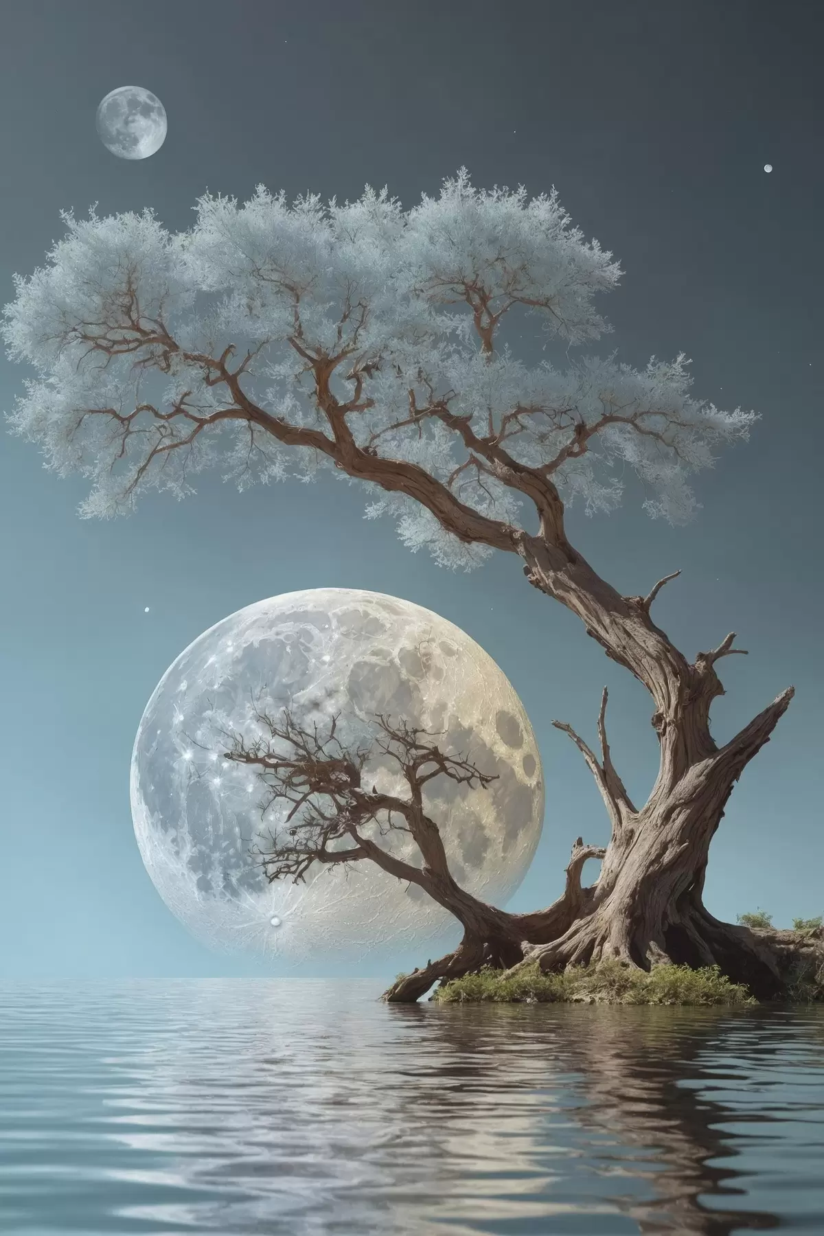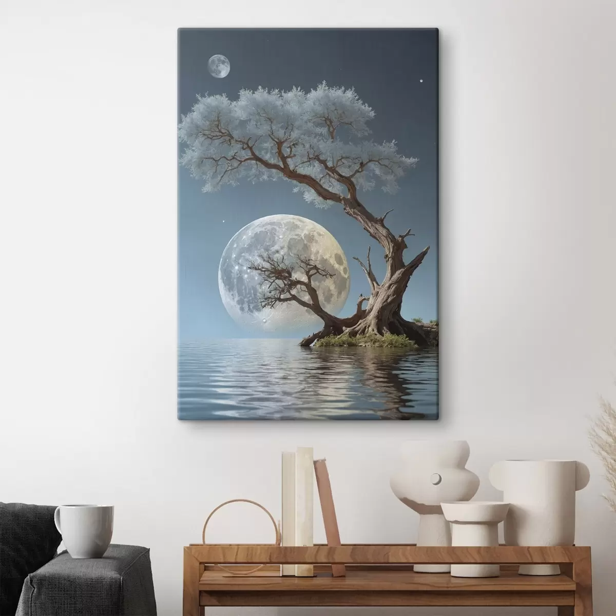 murales Árbol creciendo en medio de un lago sobre fondo lunar s44481