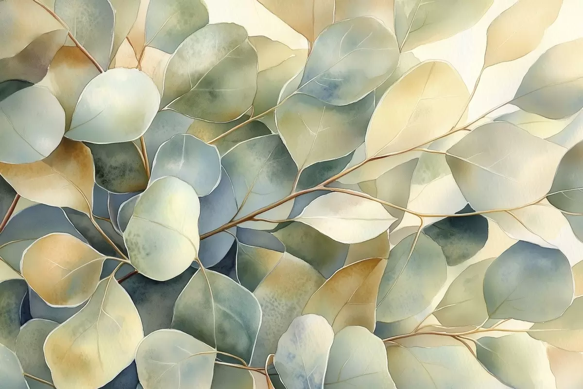 murales Hojas de eucalipto, estilo acuarela, naturaleza s44502