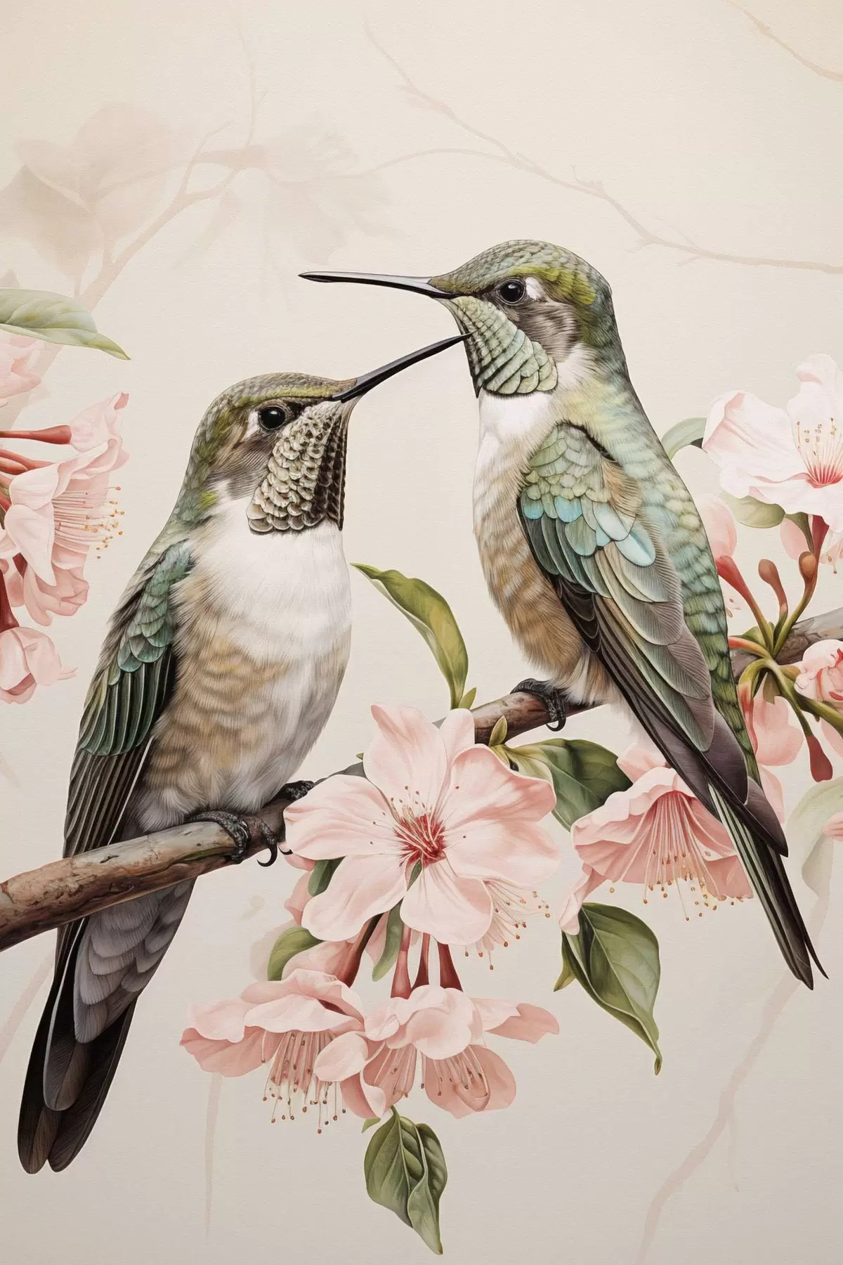 murales Una pareja de pájaros en una rama s44550
