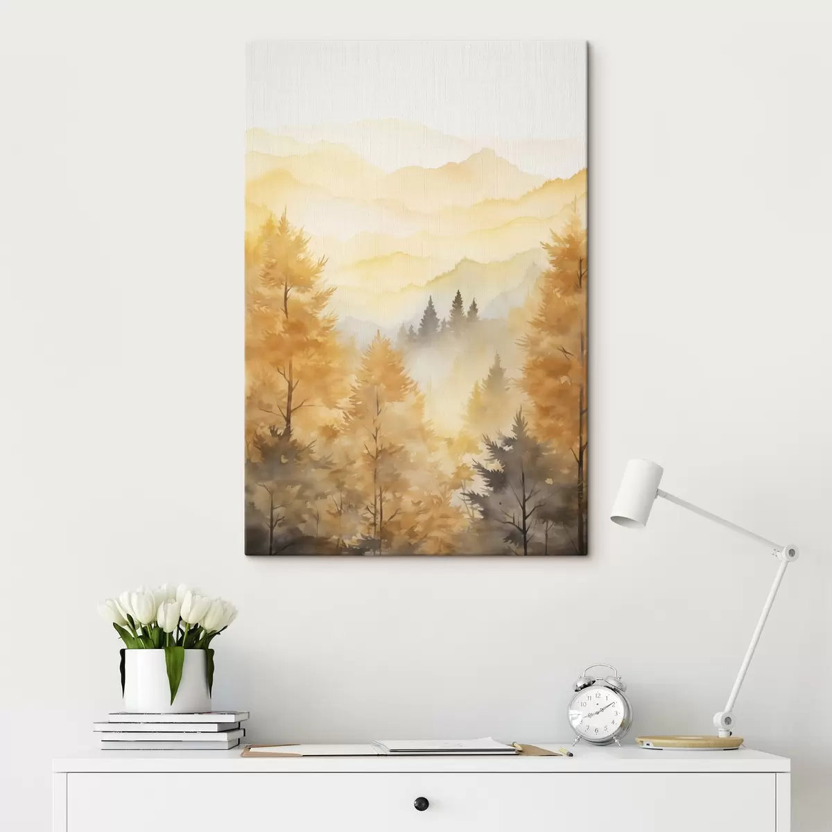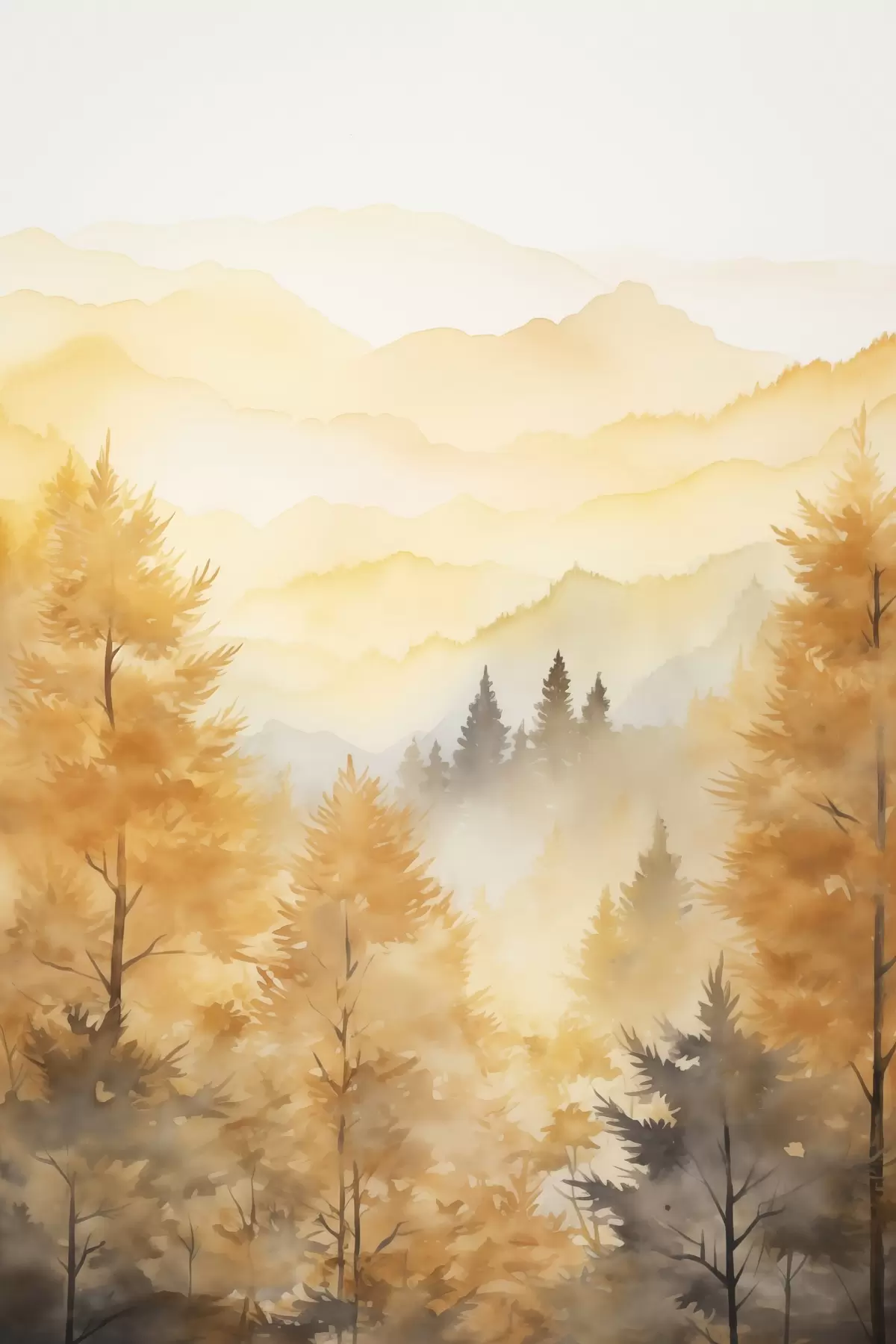 murales Precioso bosque otoñal con montañas al fondo s44614