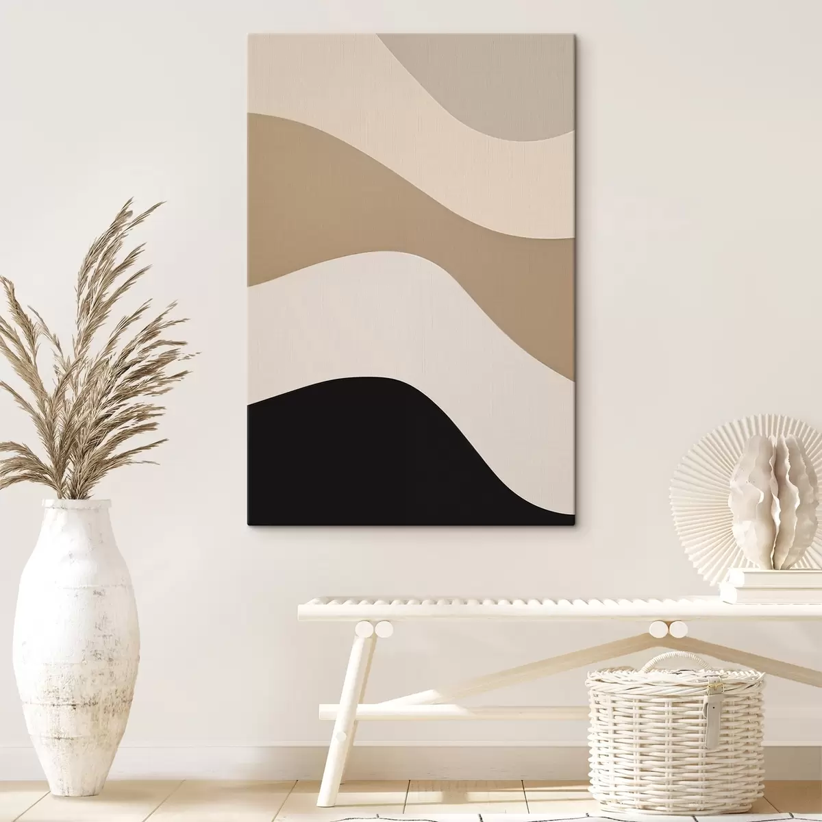 murales Ondas abstractas en beige y negro s44687