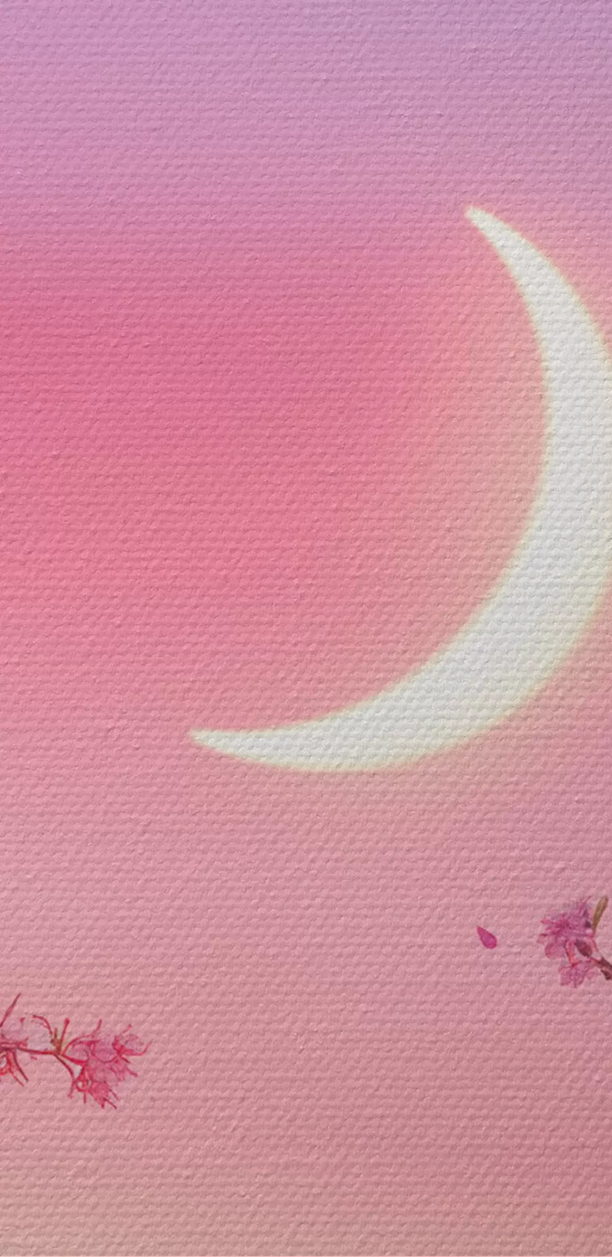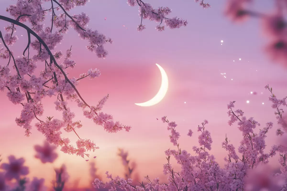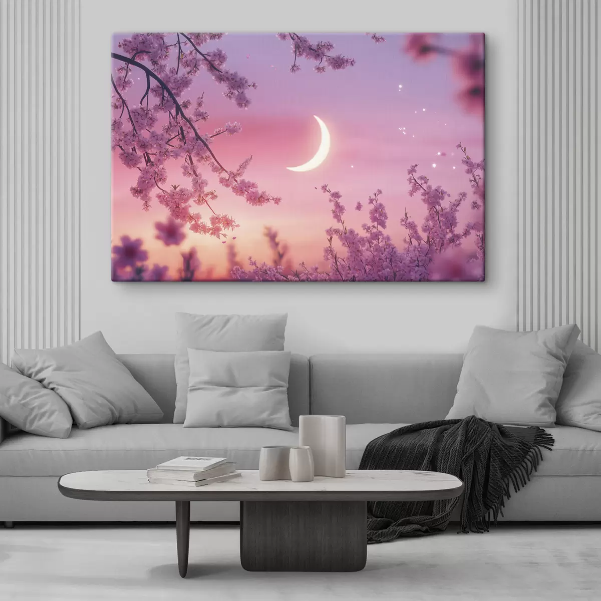 murales Flor de cerezo, cielo rosa con luna brillante, realismo s44715