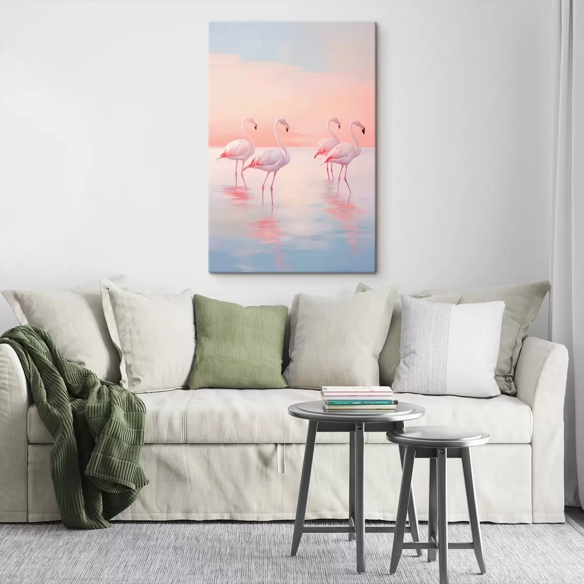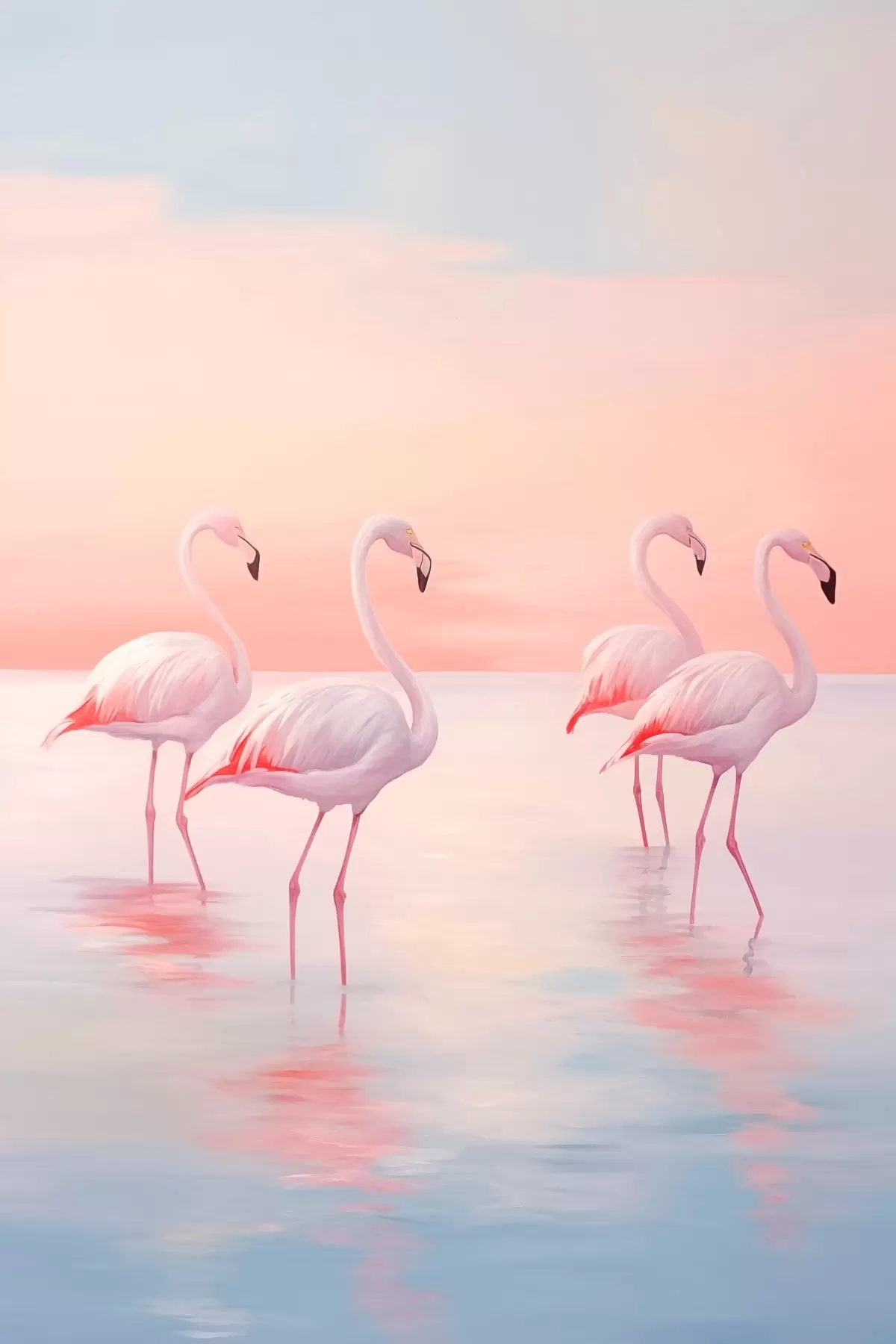 murales Flamencos en aguas poco profundas al atardecer s44732