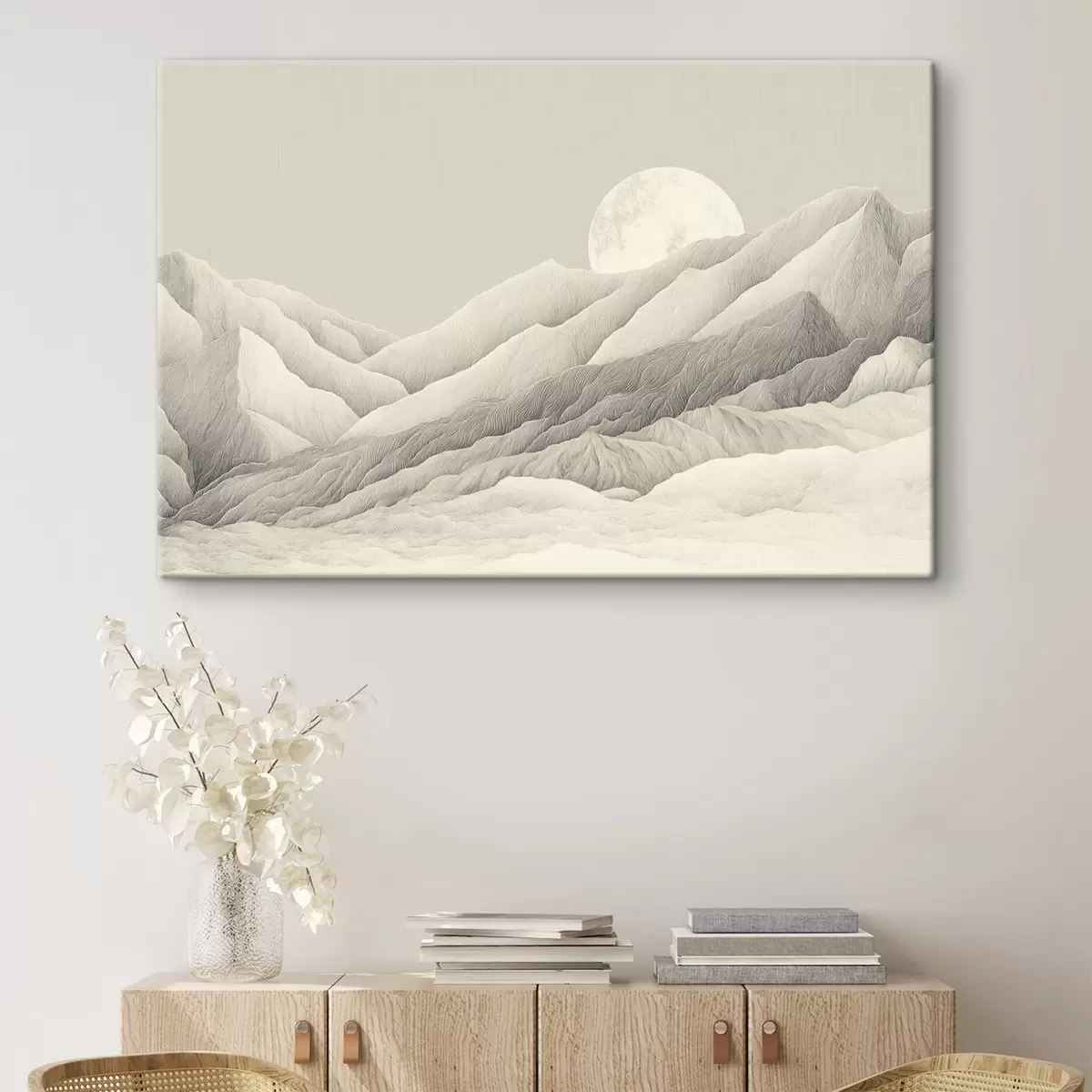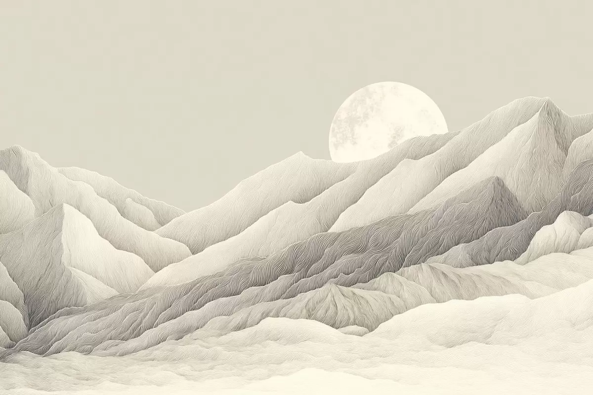 murales Montañas con luna, dibujo detallado s44788