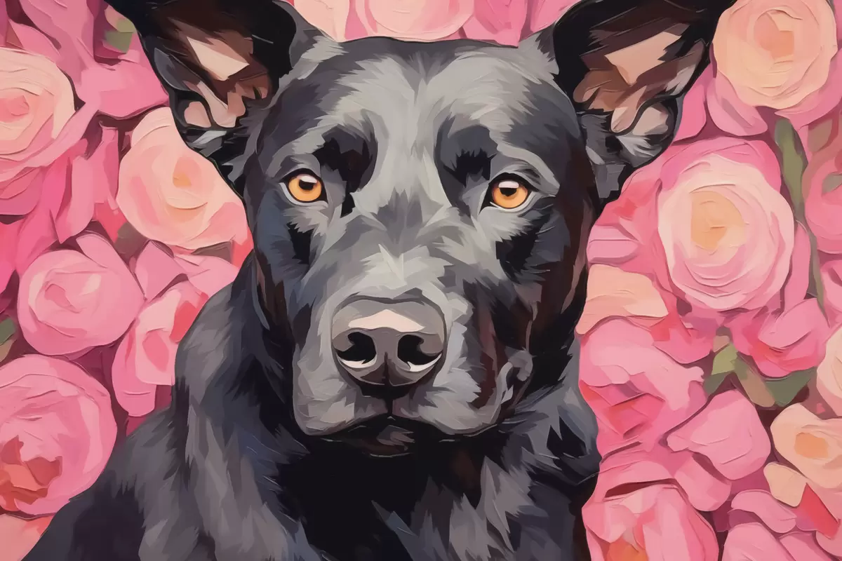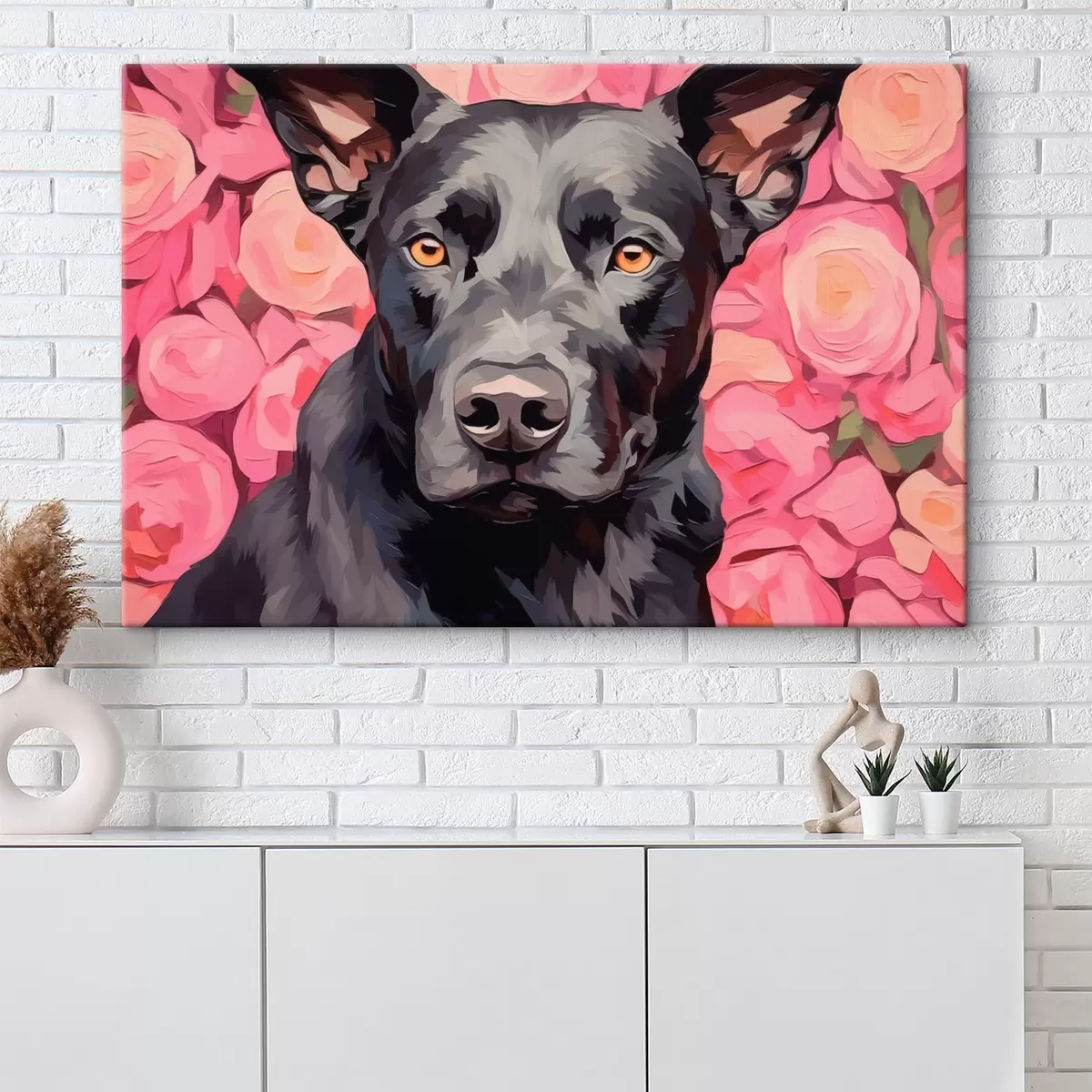 murales Perro negro sobre fondo abstracto de rosas s44817
