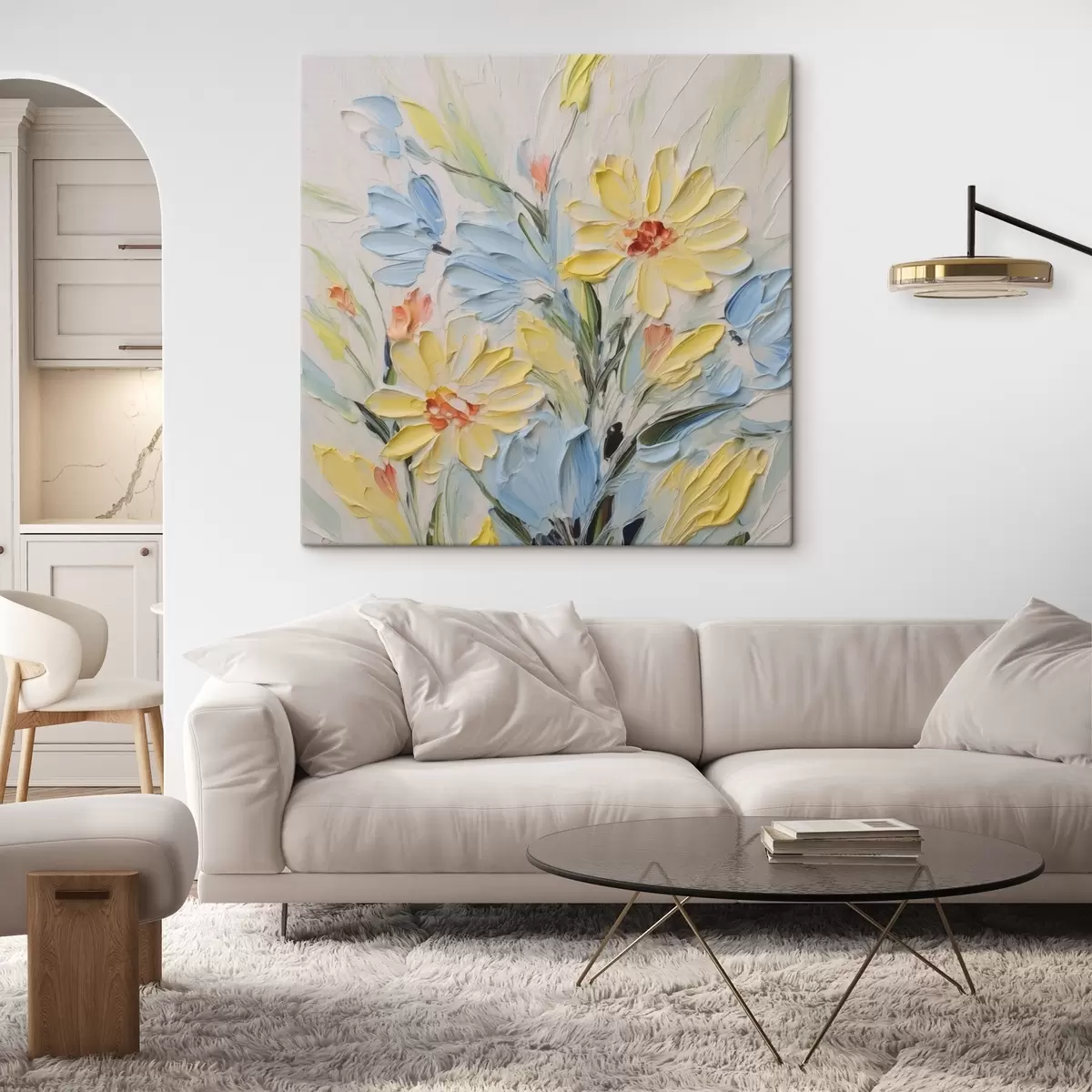 Hay tres tipos de material disponibles para pedidos: Lienzo Económico - material denso y duradero para impresión digital, idéntico al lienzo de pintor, superficie impermeable, reproducción realista de los detalles, material de grano medio. Lienzo Premium - la textura se asemeja a la de un lienzo de pintor (pequeños hilos entrelazados). Reproducción suave y detallada de la imagen sobre una superficie mate. Eco-Premium - tejido 100% algodón de alta calidad. Gracias a las fibras naturales de algodón, el material es duradero y resistente al desgaste. Excelente reproducción del color y el detalle.
