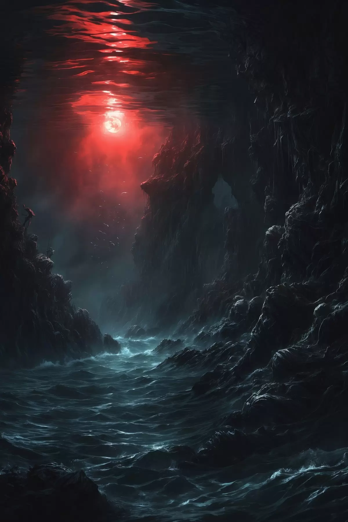 murales Oscuro desfiladero marino con luz roja desde arriba s44870