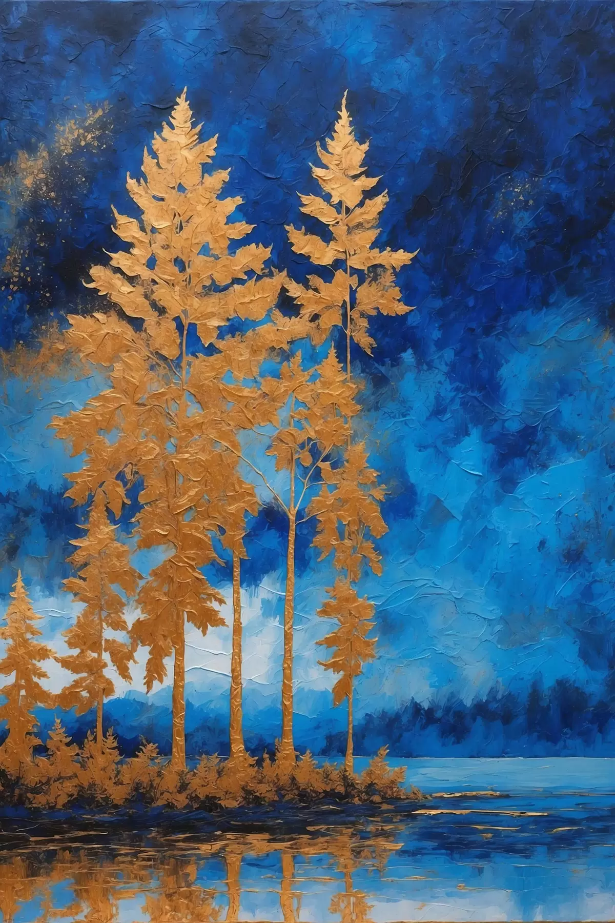 murales Árboles sobre fondo de cielo nocturno en tonos azules s44888
