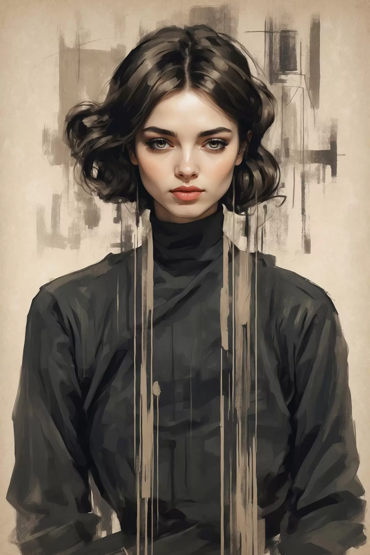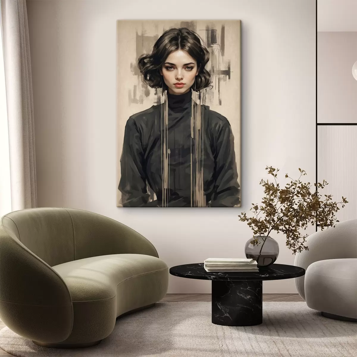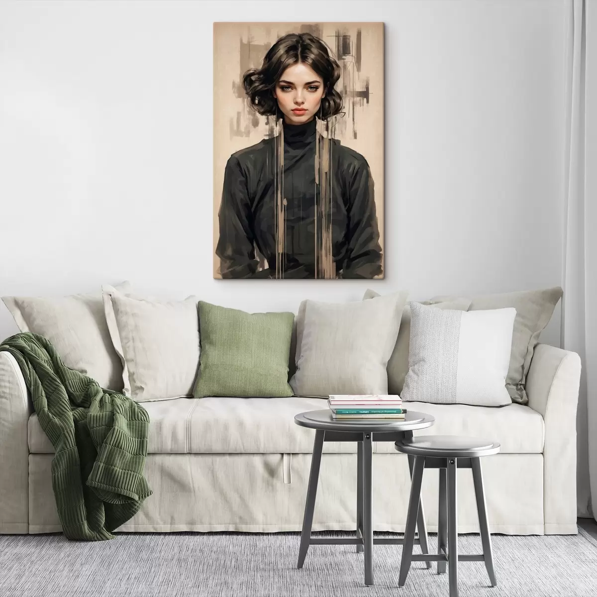 murales Retrato de mujer con pelo corto y oscuro sobre fondo abstracto s44890