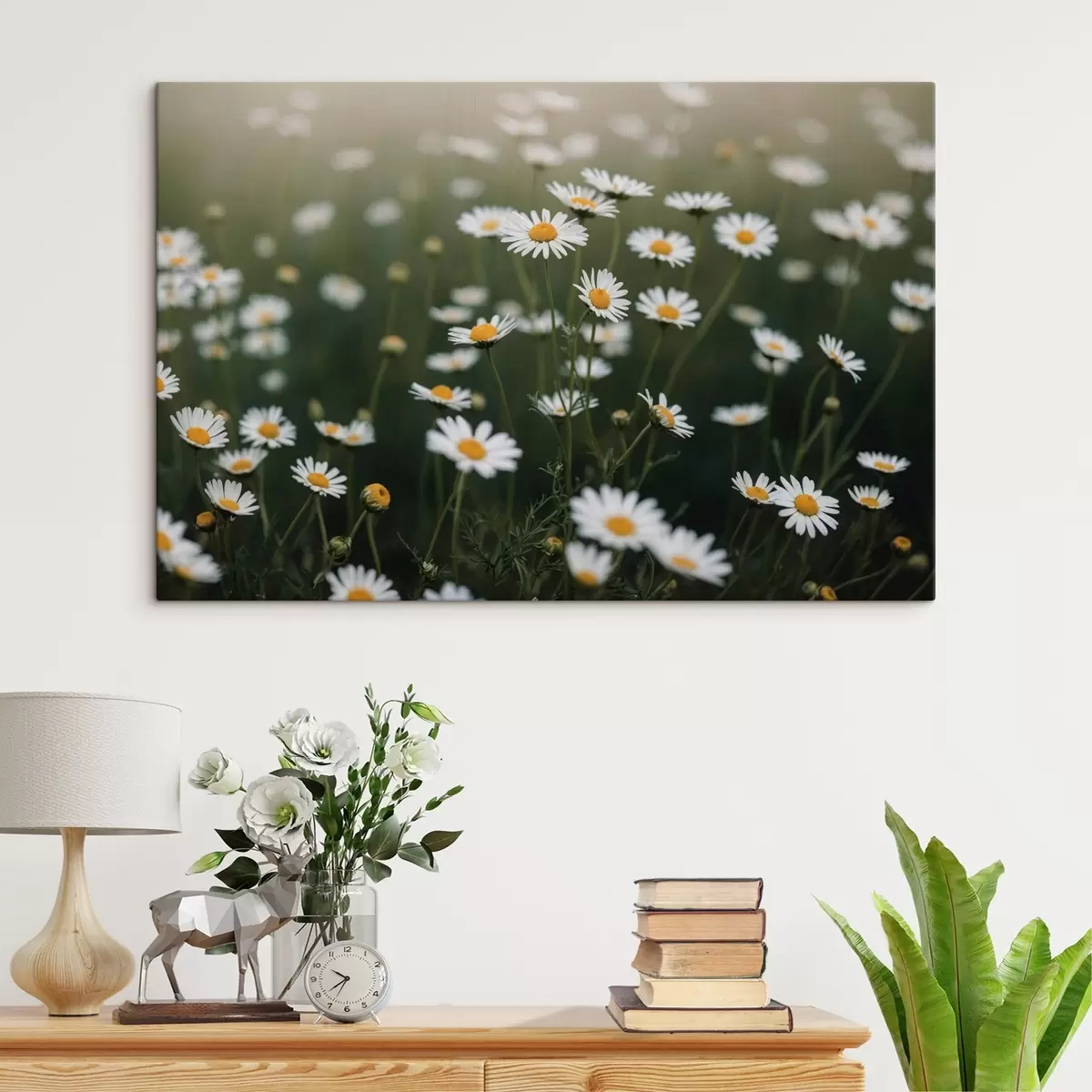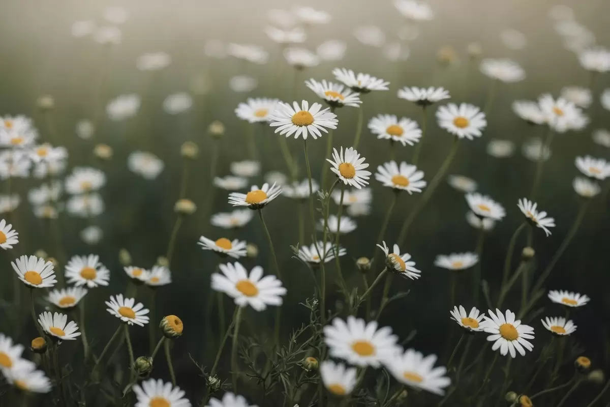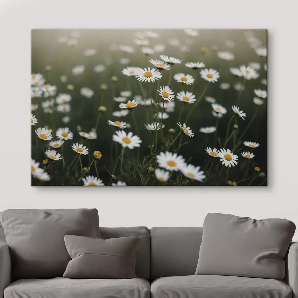 murales Campo de margaritas con fondo verde desenfocado s44898