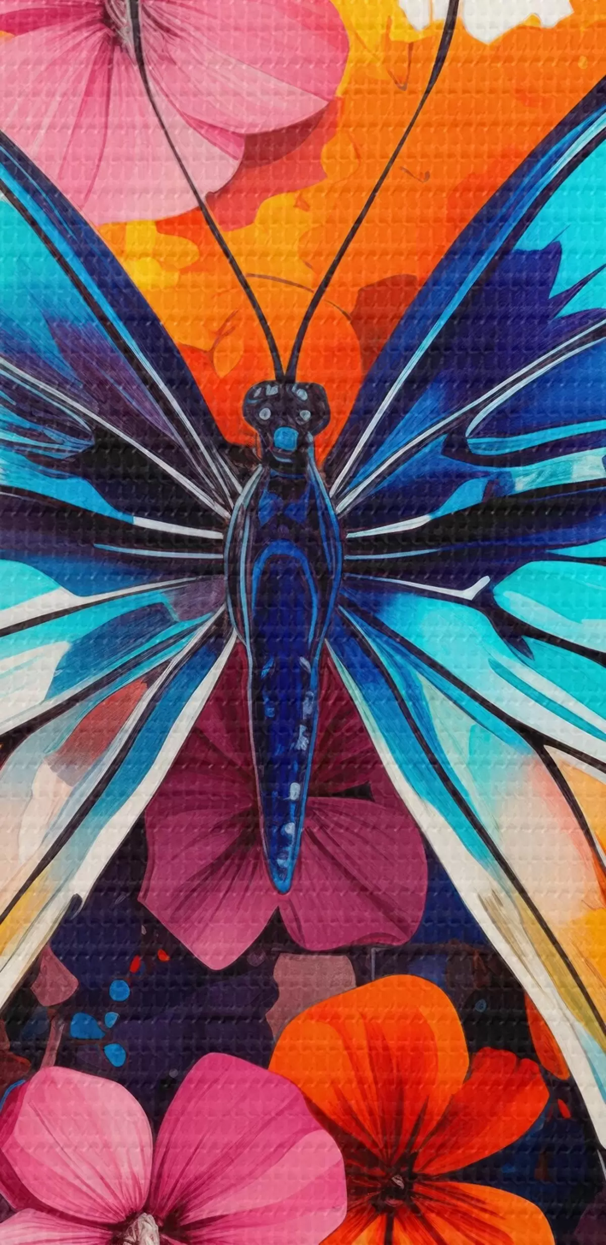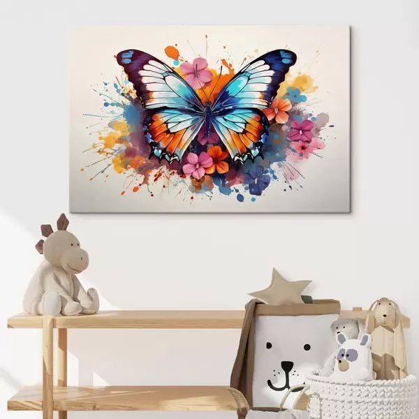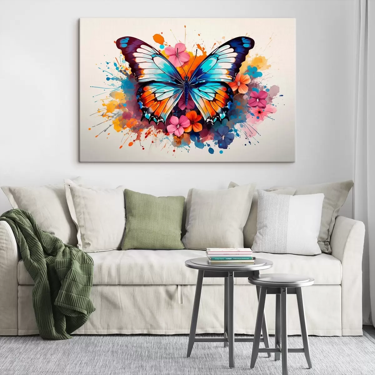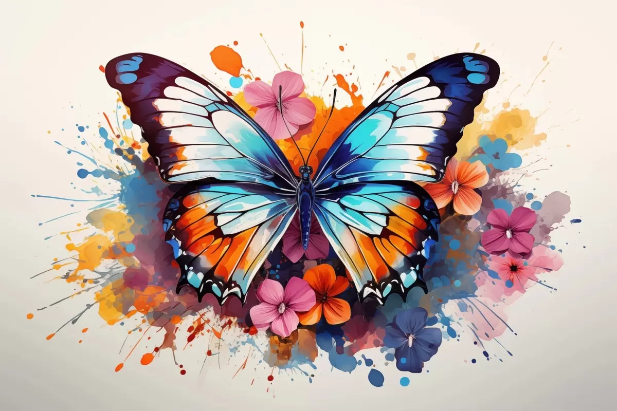 murales Composición dinámica de una mariposa y manchas florales en estilo artístico s44943