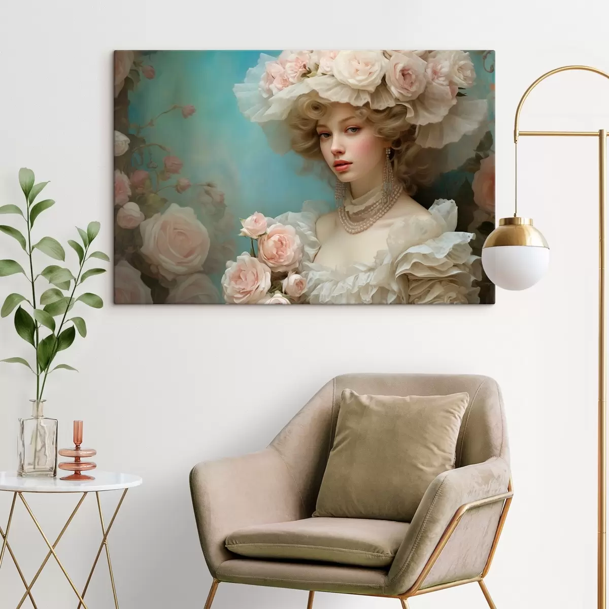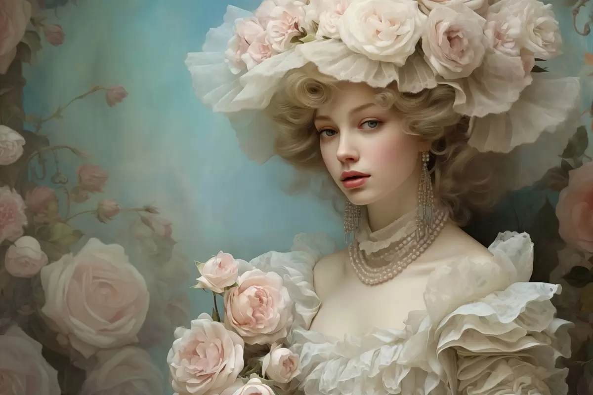 murales Elegante dama con sombrero y flores en estilo artístico s44944