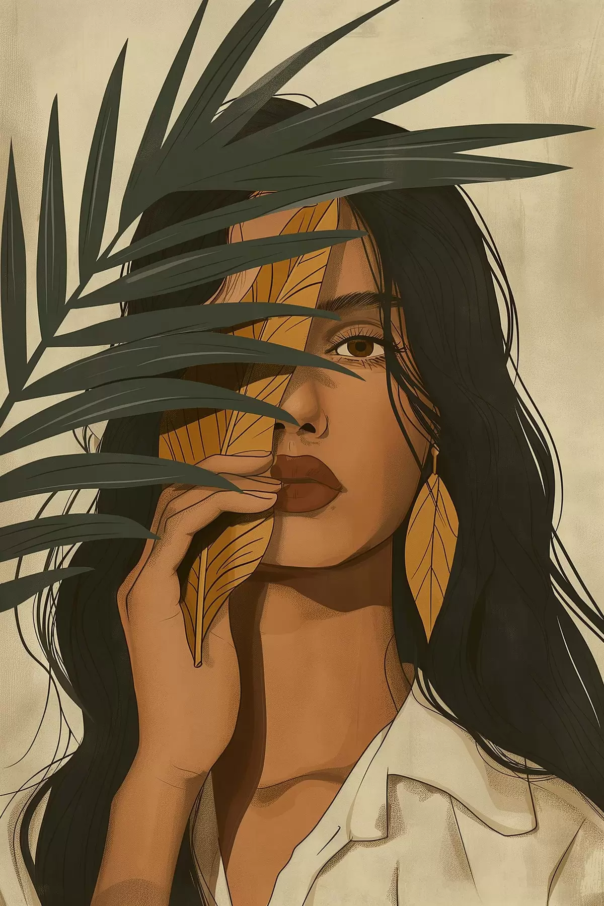 murales Rostro oculto tras las hojas s44960
