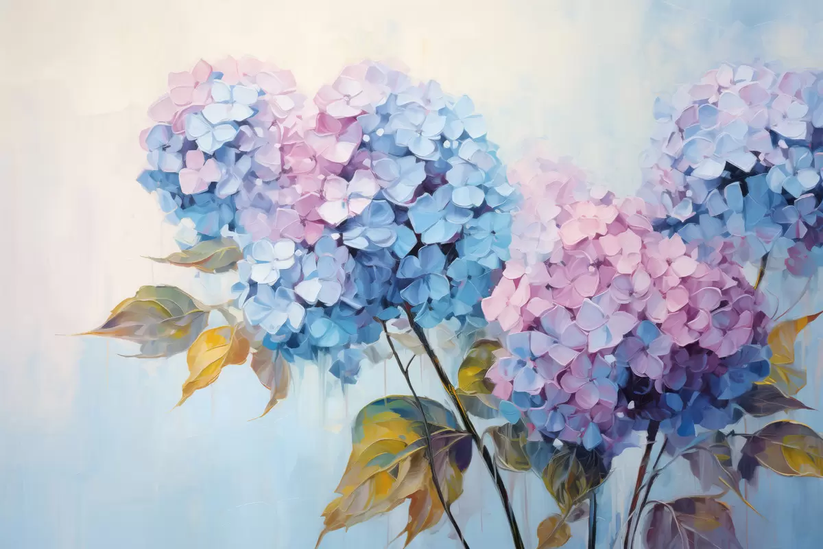 murales Flores de hortensia abstractas en tonos suaves s45056