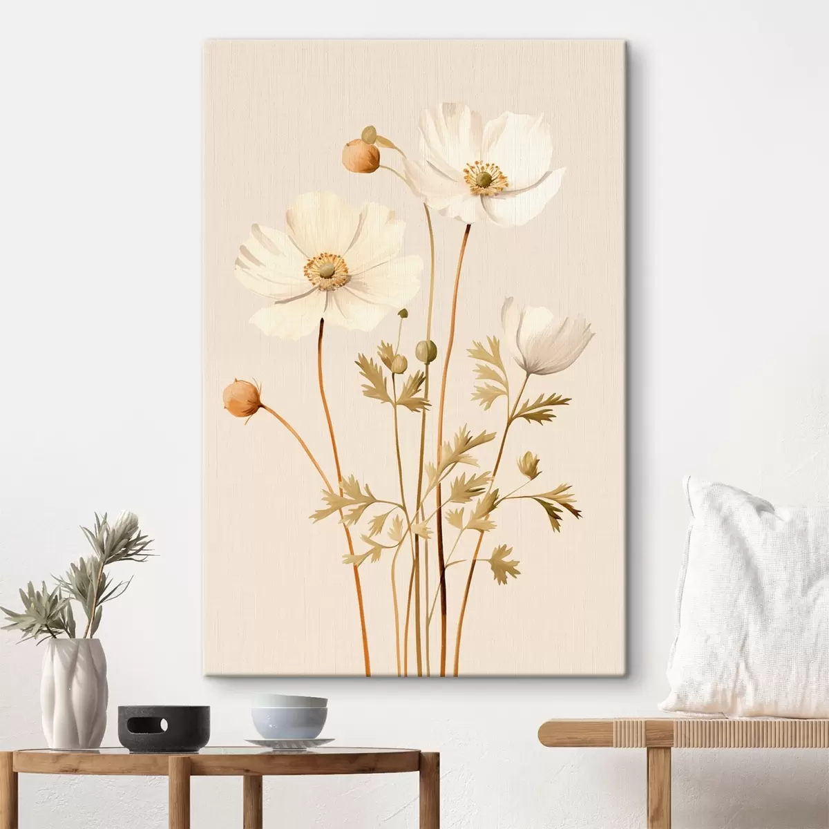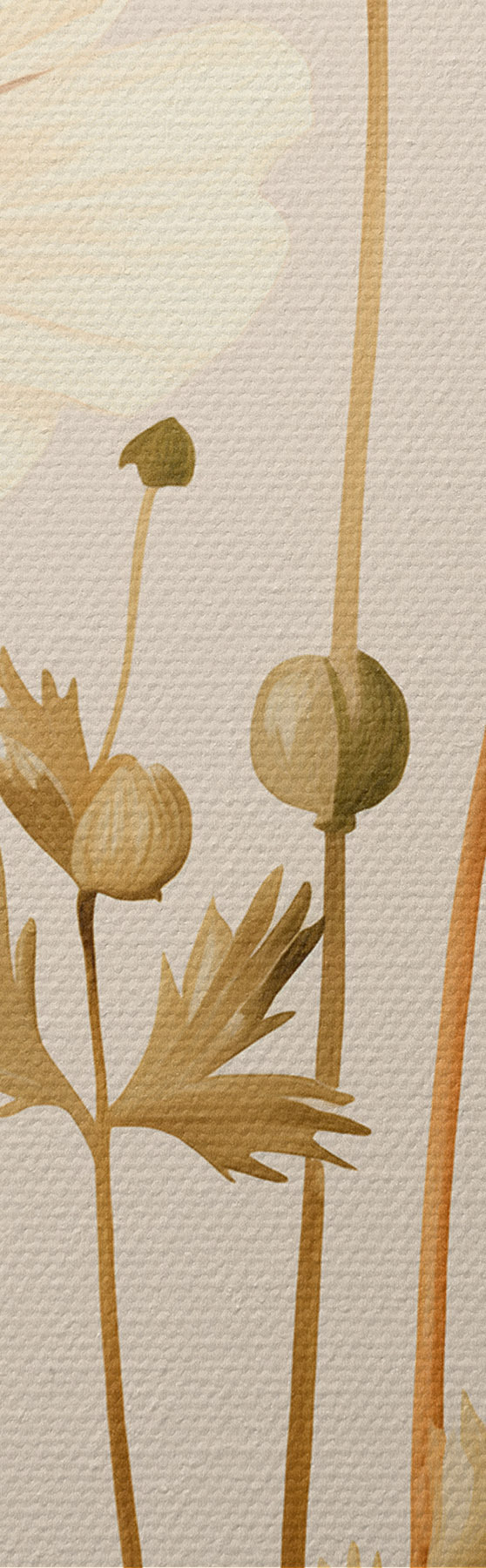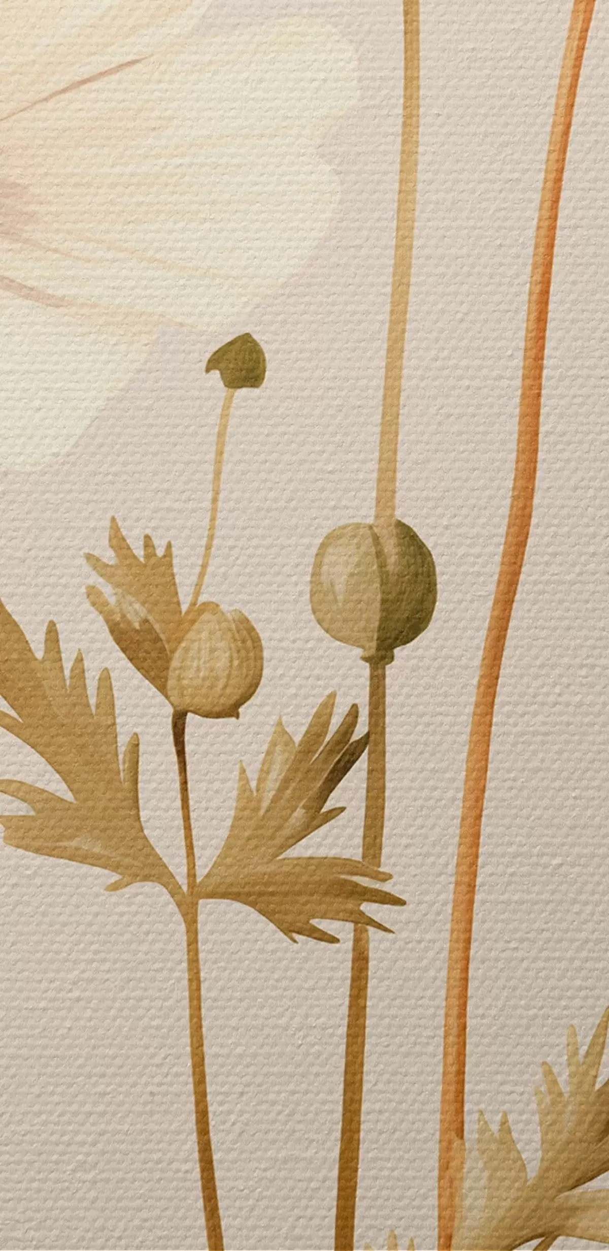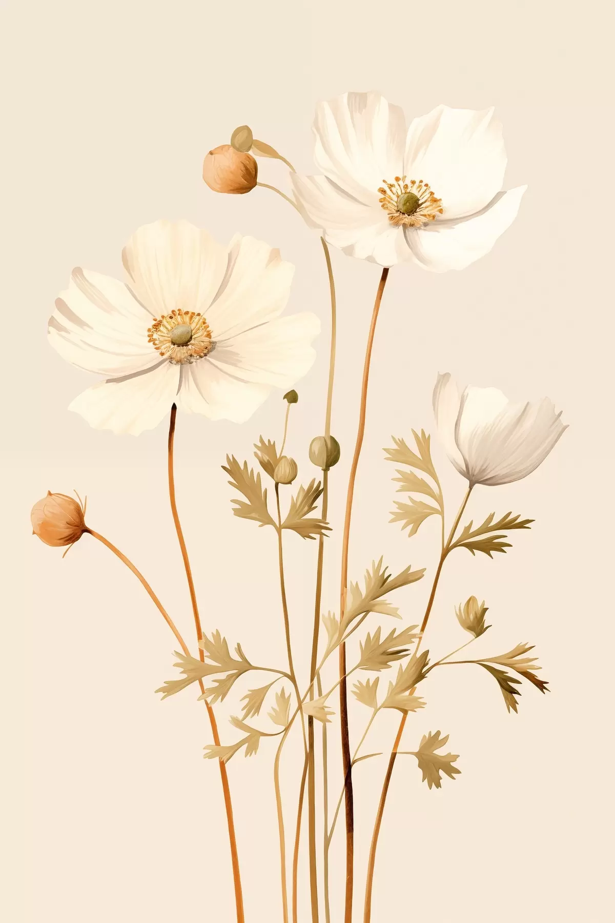 murales flor, botánico, fondo beige, tonos suaves, pétalos, planta, vintage, minimalista s45099