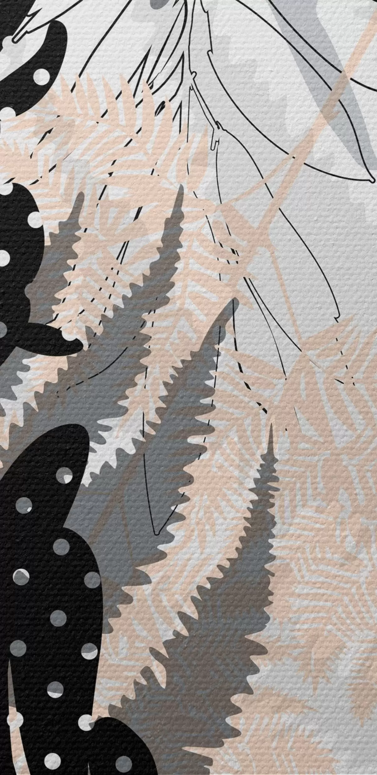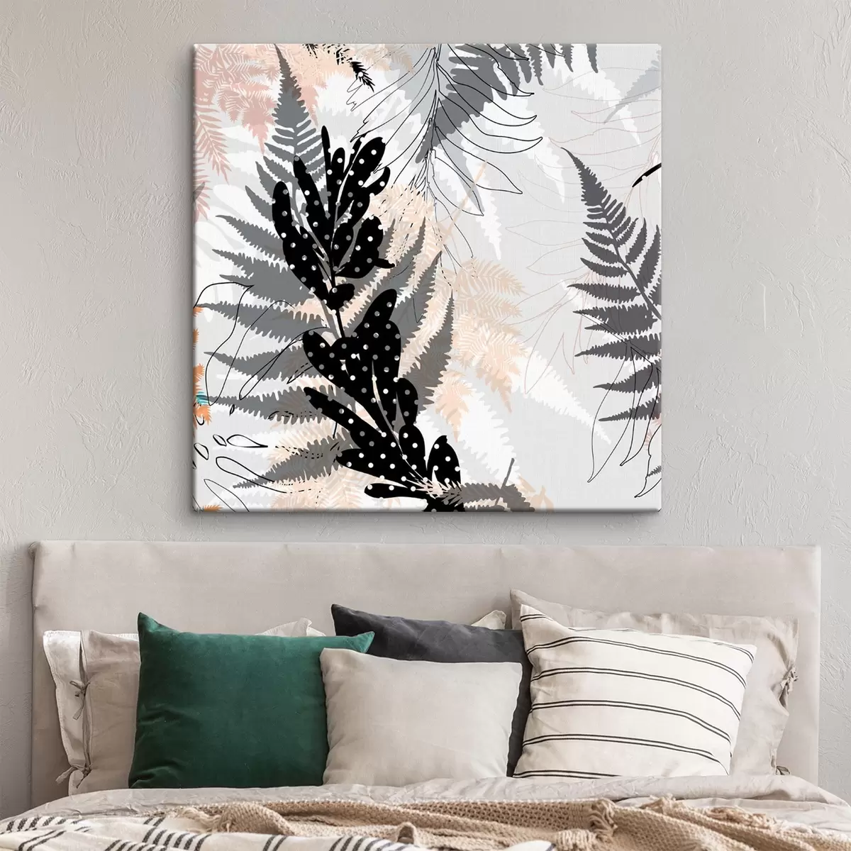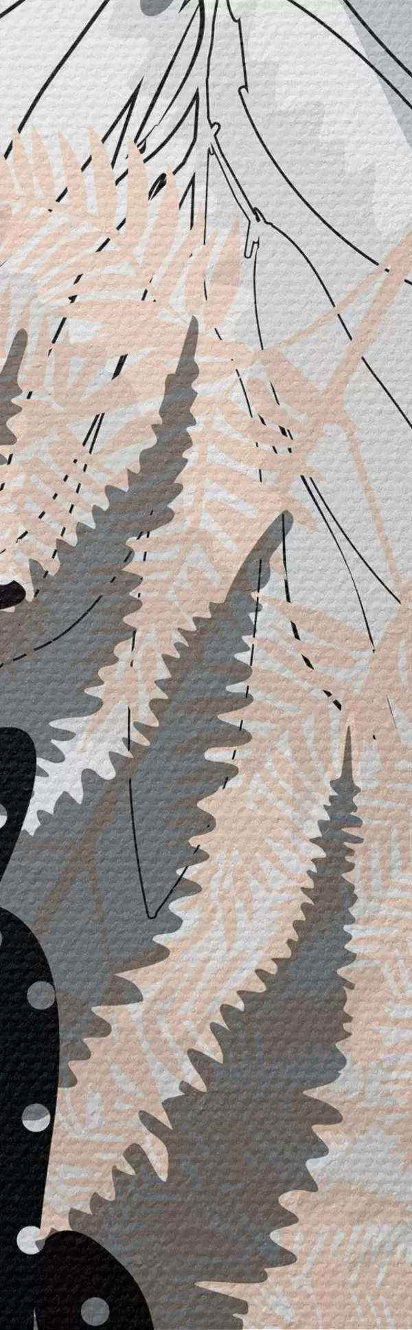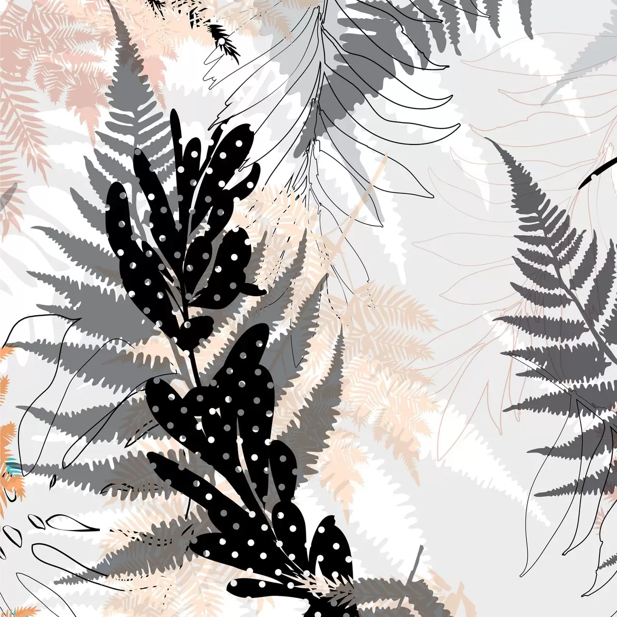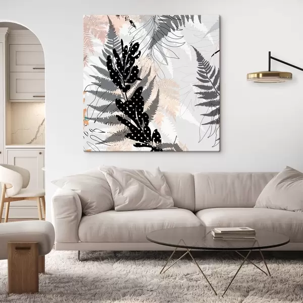 murales impresión de naturaleza, follaje decorativo, mezcla de selva, formas de helecho, paleta neutra, arte de la hoja s45104